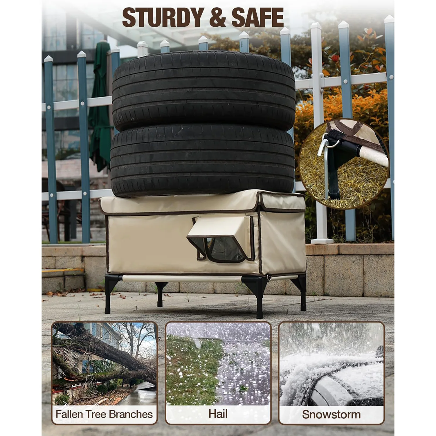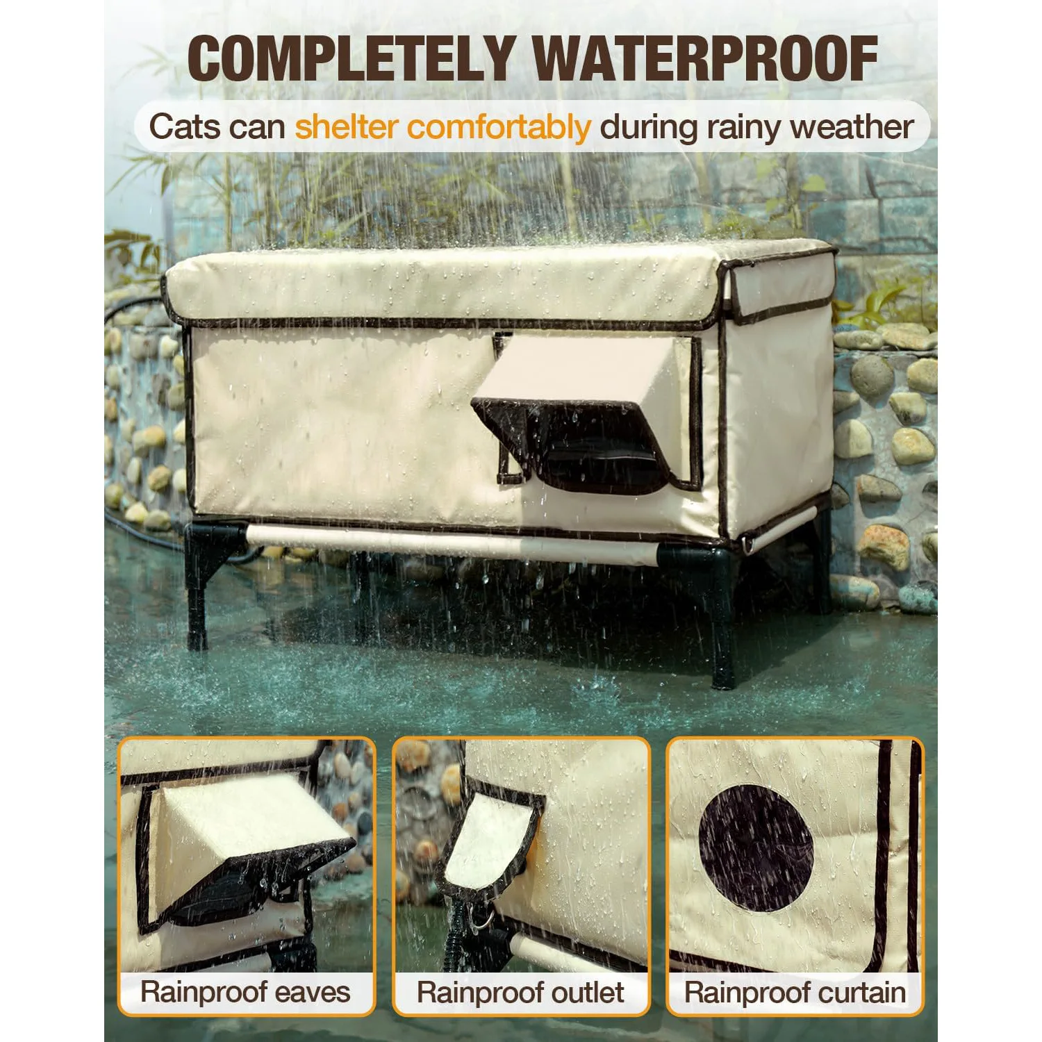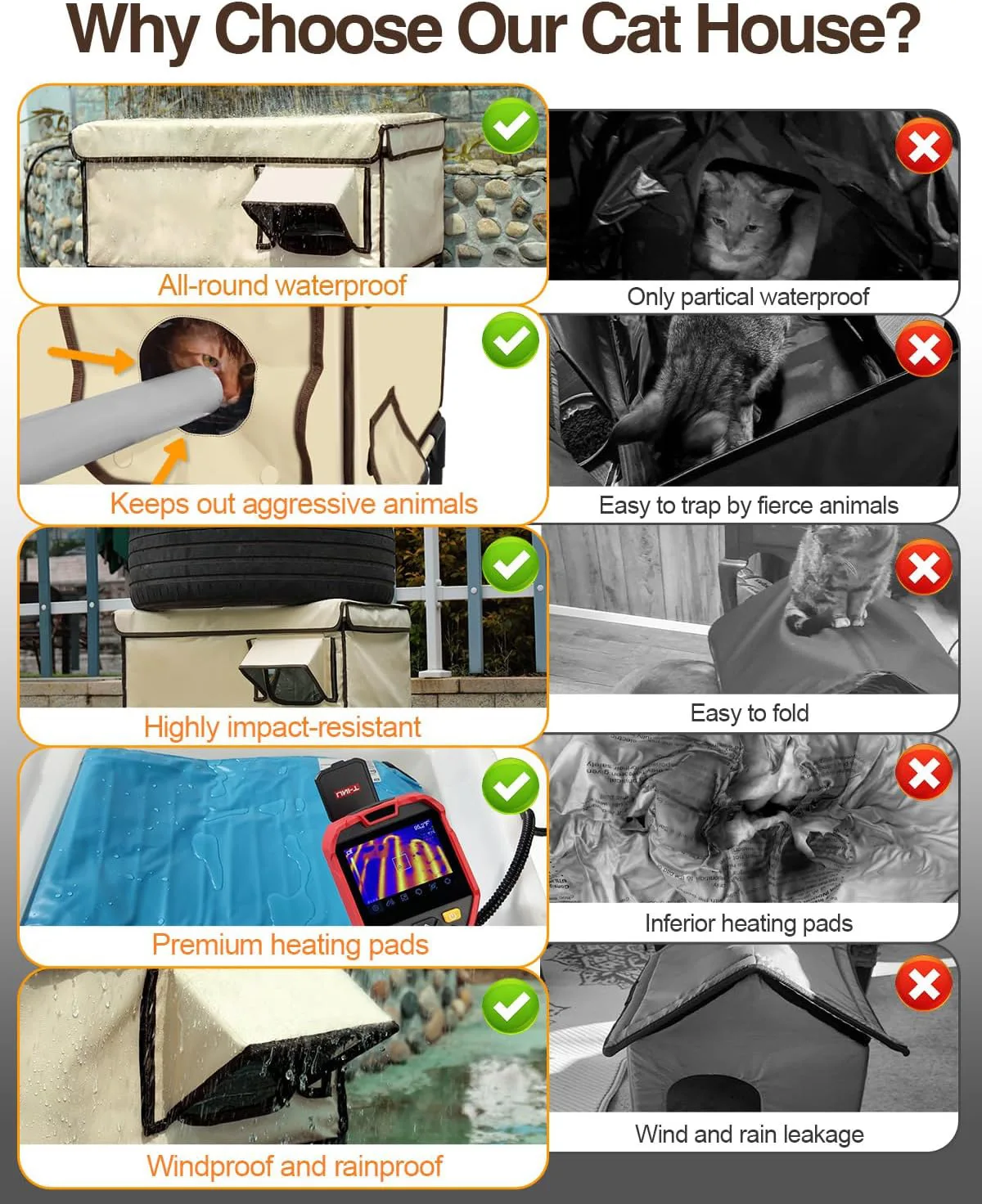 Casa para gatos al aire libre, tubo de PVC que aumenta la tela Oxford, casa impermeable para mascotas con almohadilla calefactora, nido para gatos callejeros, productos para mascotas