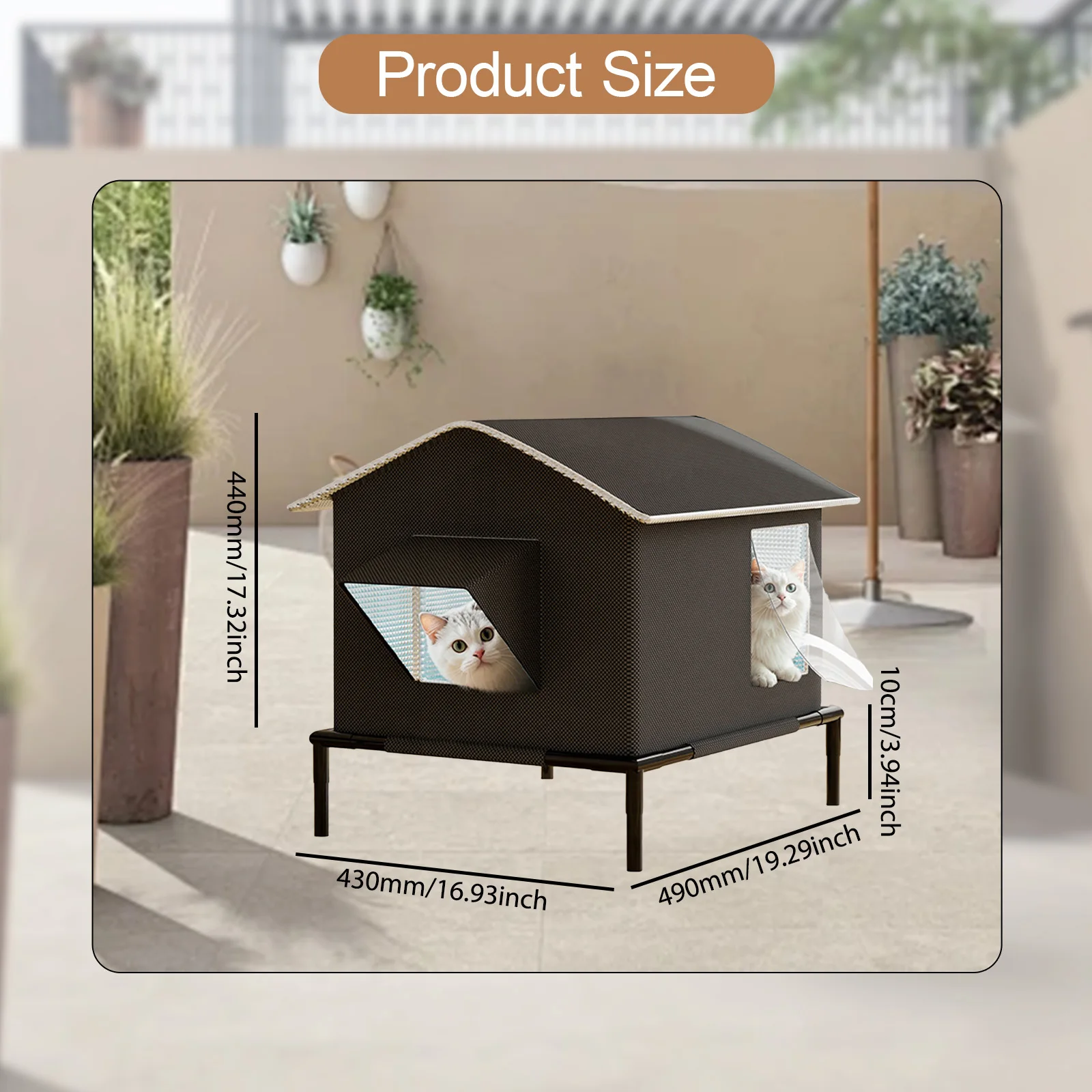 【Soporte elevado】: la carpa para gatos resistente a la intemperie con pies elevados la mantiene alejada del suelo y es impermeable y resistente a la humedad.