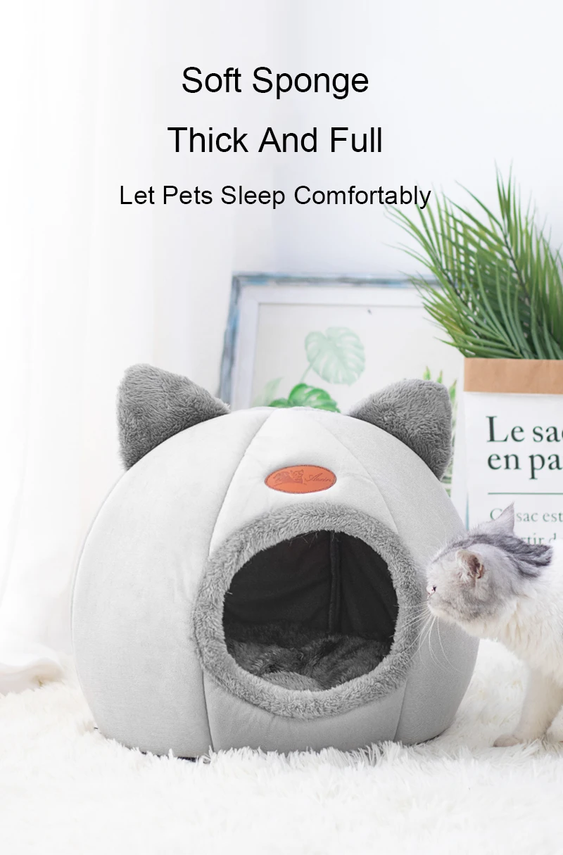 Cama extraíble para gatos, casa cálida de invierno rellena de algodón PP para camas y tapetes para gatos con fondo antideslizante