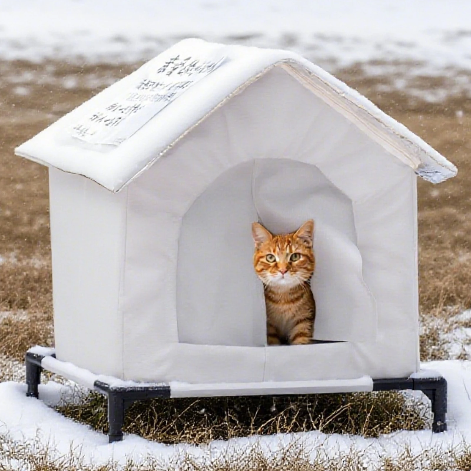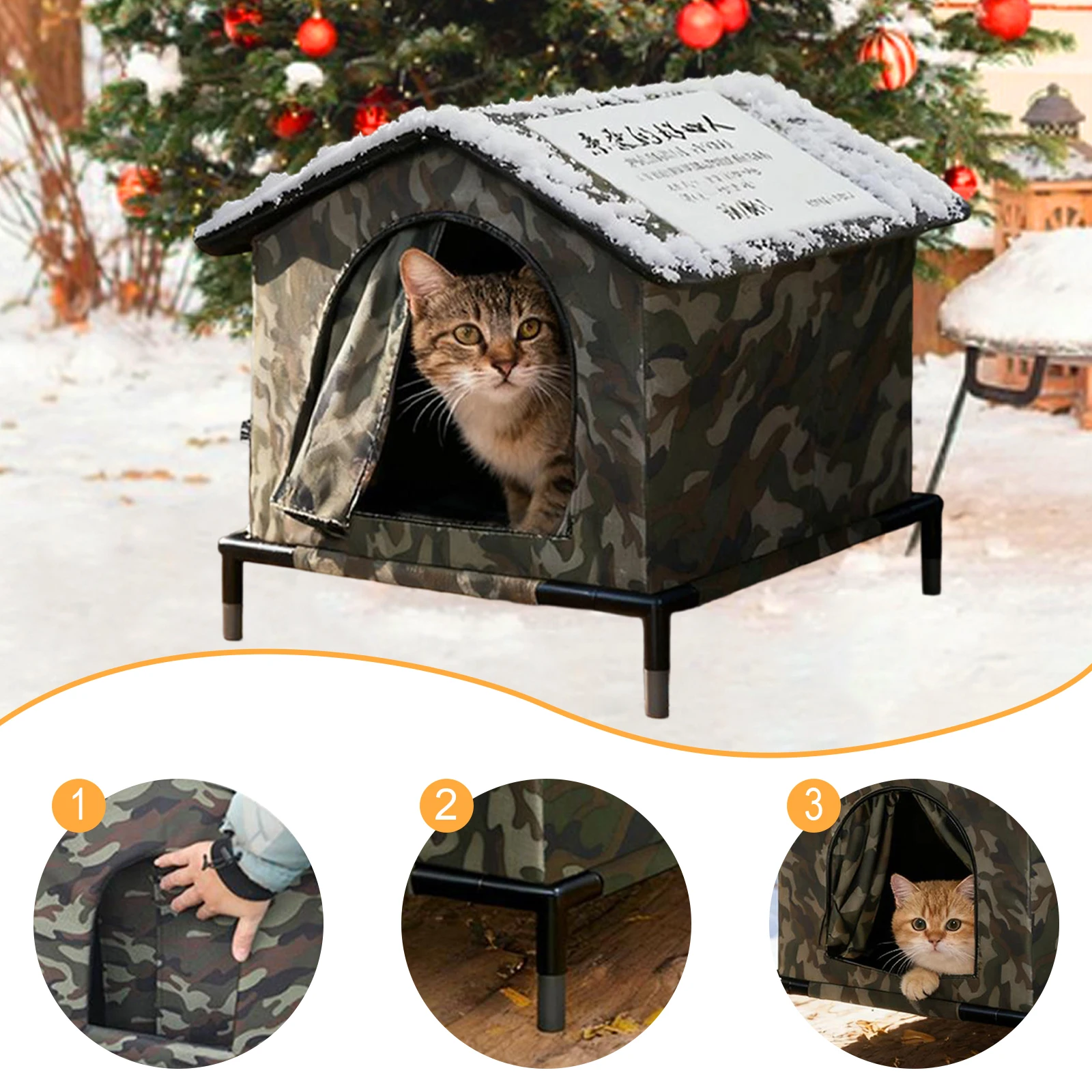 【Impermeable】 Fabricada con tela Oxford con un revestimiento impermeable, esta casa para gatos al aire libre resiste eficazmente la lluvia y la humedad, manteniendo a su mascota seca y cómoda en todas las estaciones.