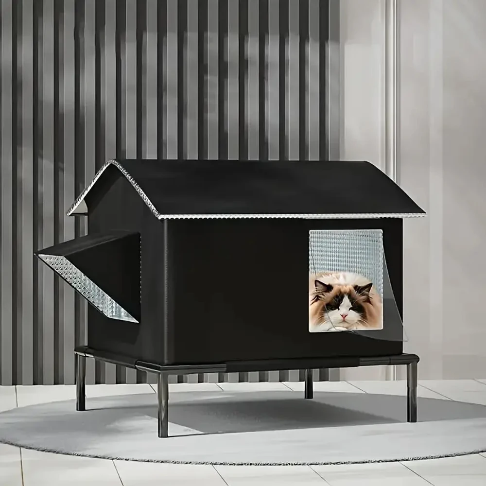 ・¡Esta maravillosa casa para gatos totalmente impermeable está hecha con amor!La ventana es perfecta para dejar entrar aire fresco y evitar que la lluvia se salga.A tu amigo peludo le encantará pasar tiempo en esta acogedora habitación al aire libre.