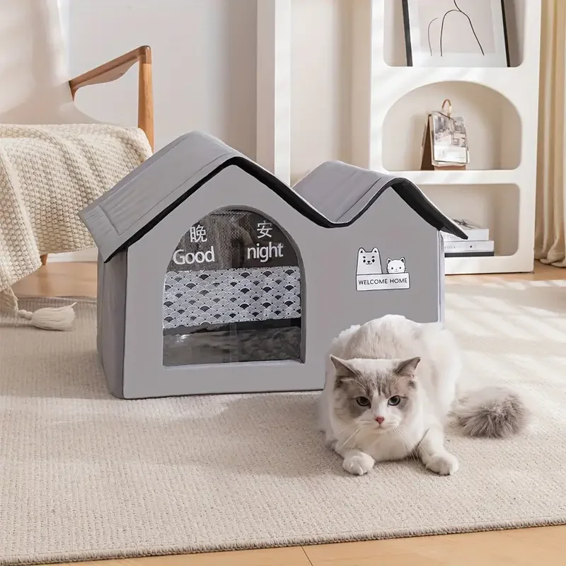 Casa para gatos extraíble, suave y acogedora, resistente a la intemperie, con puerta, refugio exterior seguro para gatos salvajes de menos de 11,02 libras