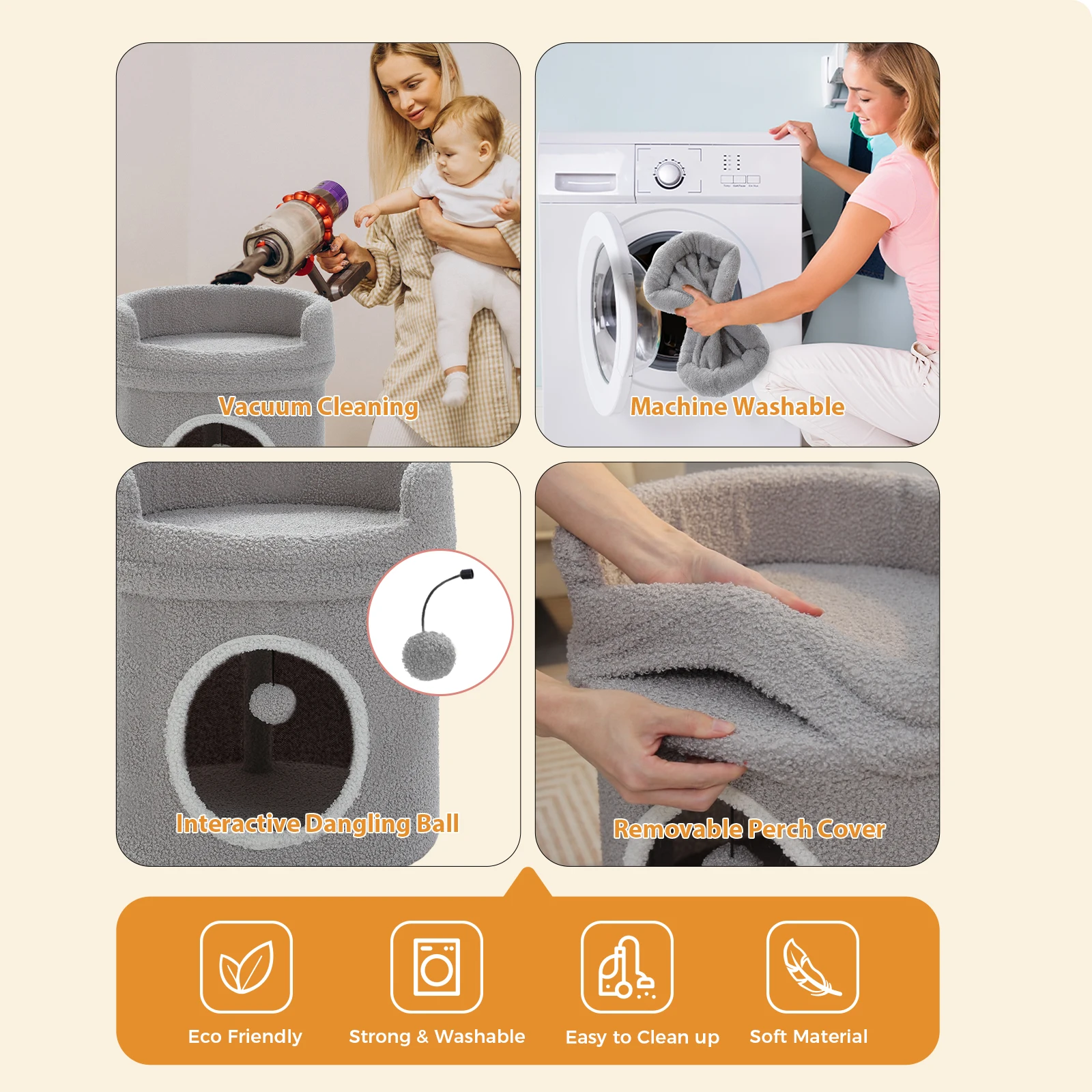 • Fácil de montar y servicio al cliente: Las camas para gatos PETEPELA para gatos de interior vienen con todo el hardware necesario e instrucciones claras del condominio para gatos para un montaje rápido y sin complicaciones.Si ocurre algún problema durante el uso de la cama y los muebles para gatos, no dude en contactarnos