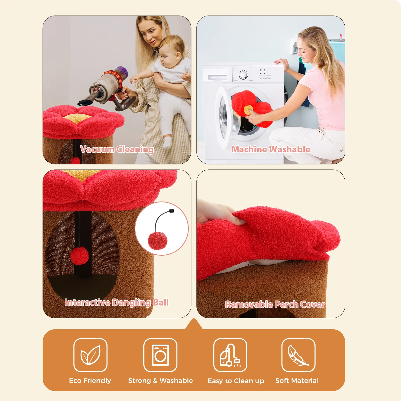 • Estructura espaciosa y estable: las camas para gatos PETEPELA con 1 cueva para gatos y 1 plataforma para gatos son bastante grandes y definitivamente serían un gran espacio para los gatos.Tus gatos pueden esconderse en la casa para gatos cerrada o saltar a la percha de flores para ver afuera de la ventana.