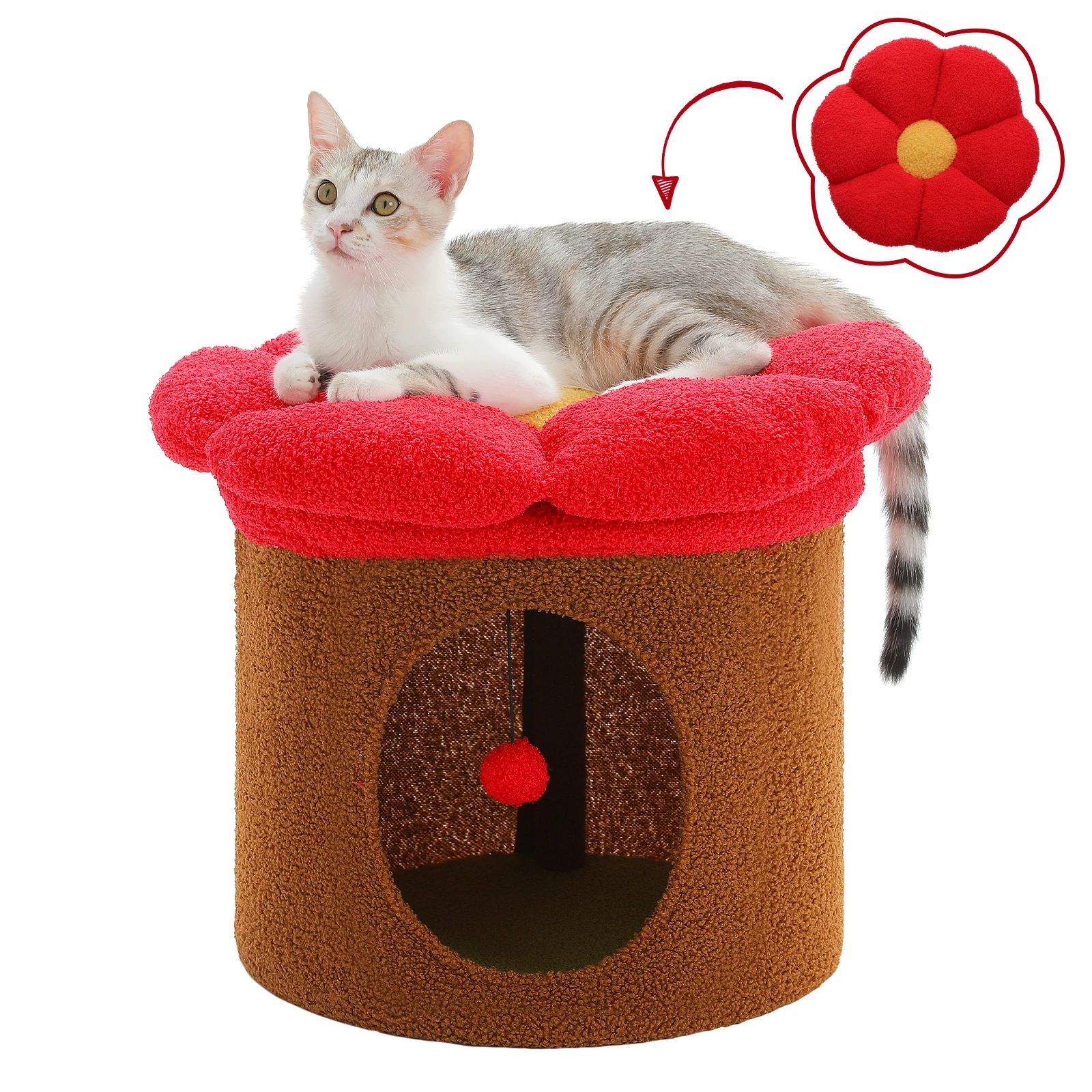 Nombre: Casa para gatos de flores estable con bola colgante interactiva