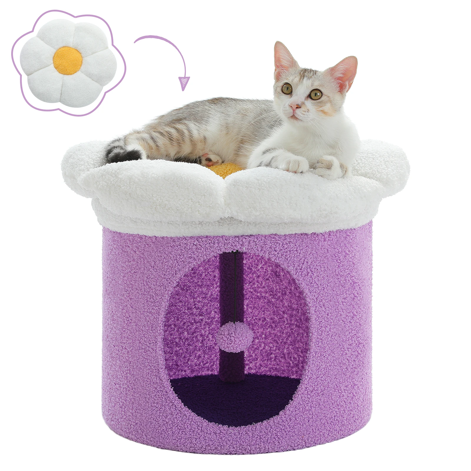 • Cama para gatos de flores grandes: esta adorable cama para gatos de interior con una percha para gatos extraíble súper grande [Dia=50,8 cm], permite una fácil limpieza y mantenimiento.El lindo diseño de esta casa para gatos de flores seguramente atraerá la atención de su gato y brindará un lugar de descanso acogedor para más de una casa.