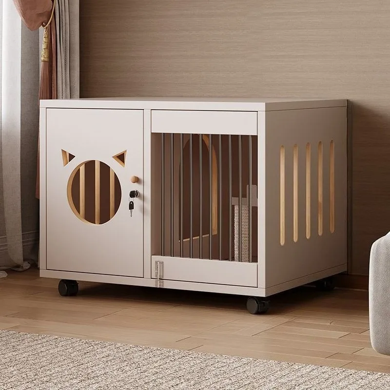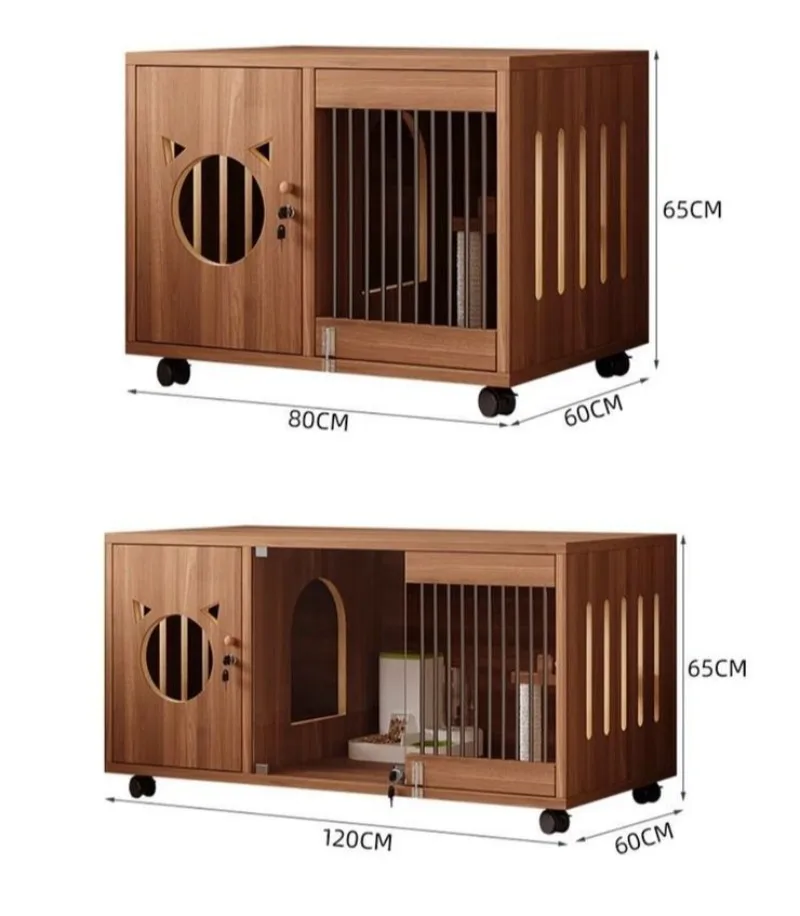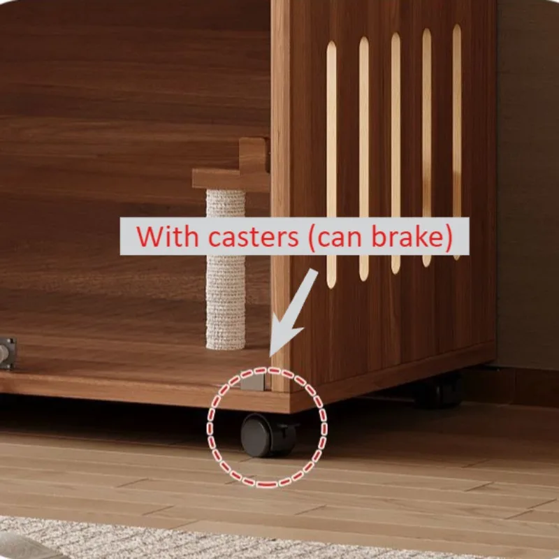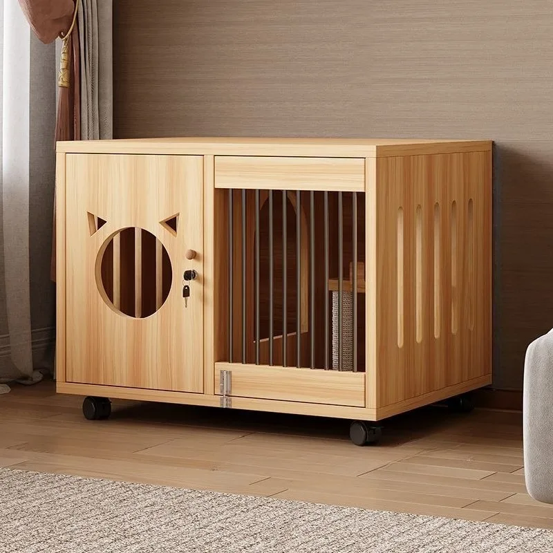 Casa para gatos de madera maciza, casa transparente para interiores, jaula grande para gatos y gatitos con ruedas de freno, cama transpirable para perros y gatitos