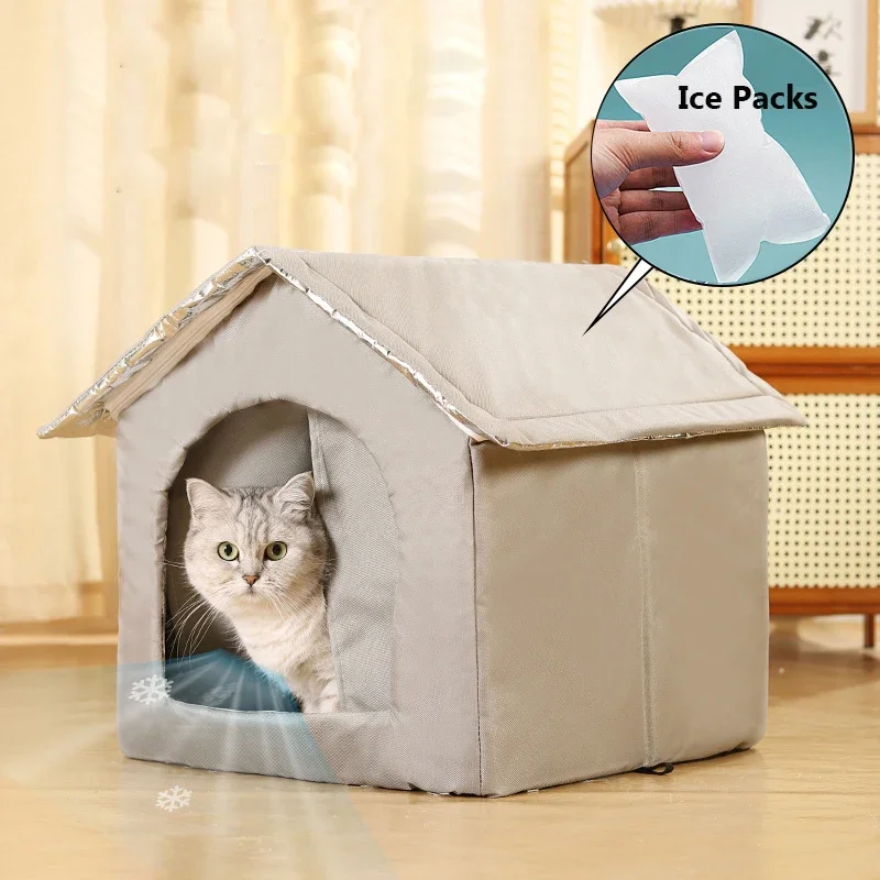 Casa para gatos, refrigeración de verano para perros, gatos, casa de hielo para mascotas, papel de aluminio, cueva impermeable para exteriores, cueva de viaje portátil cálida para invierno