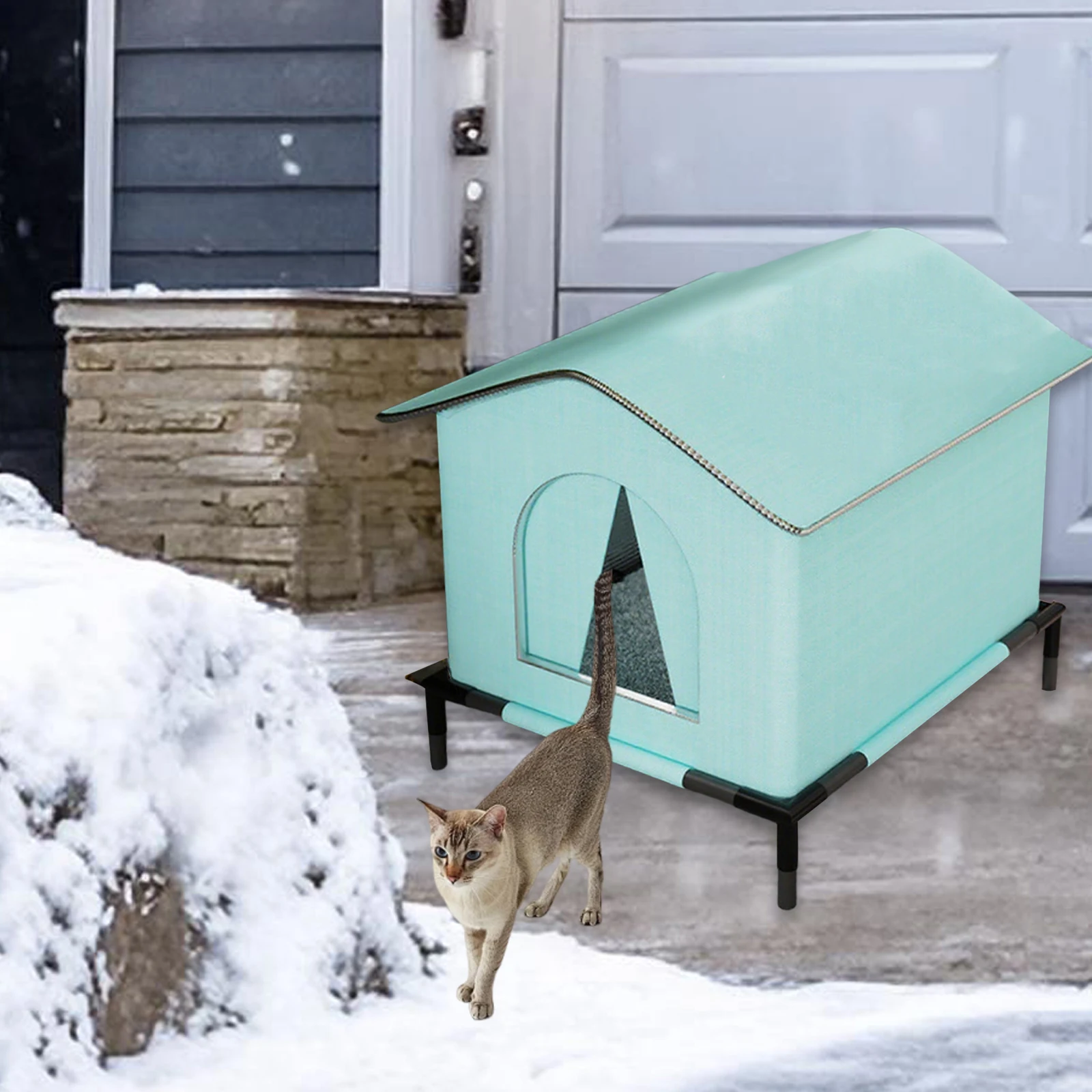 【Impermeable】 Fabricada con tela Oxford con un revestimiento impermeable, esta casa para gatos al aire libre resiste eficazmente la lluvia y la humedad, manteniendo a su mascota seca y cómoda en todas las estaciones.