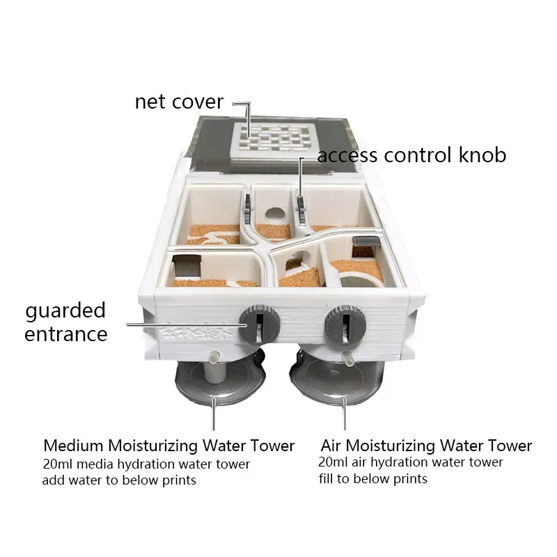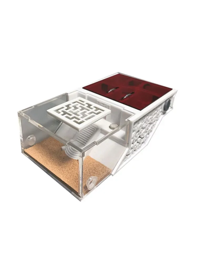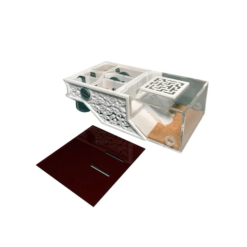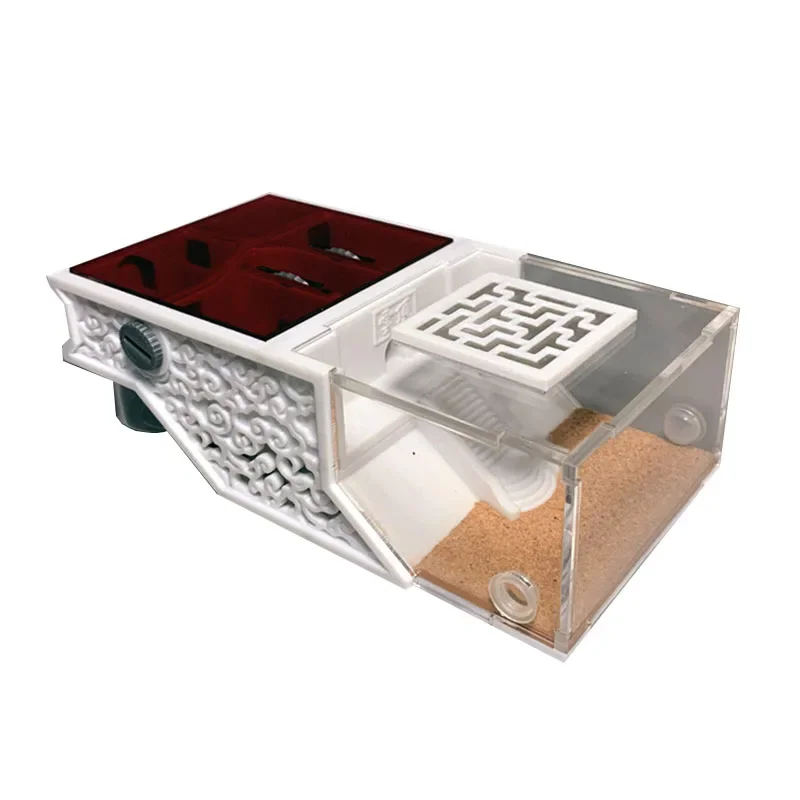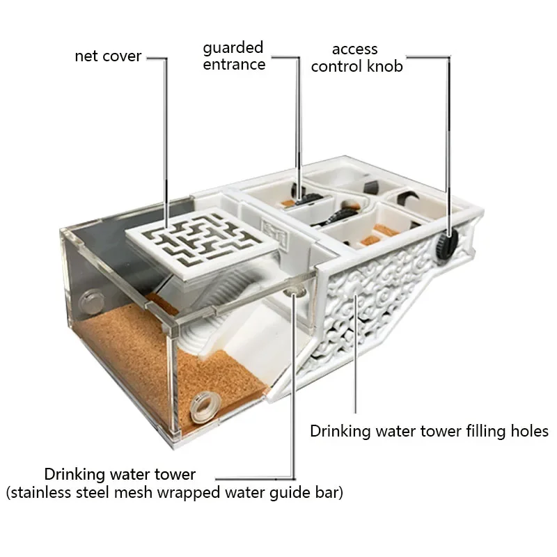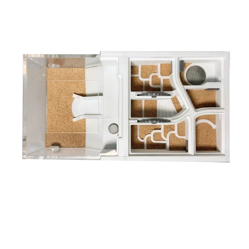 3. Este nido es adecuado para parejas grandes de hormigas y se puede introducir directamente en el nido de la nueva reina. La estructura compacta del nido proporciona suficiente seguridad para que la reina ponga huevos en el nido. La hidratación del aire y los medios hidratantes están disponibles para satisfacer las diferentes necesidades de las hormigas. El sistema de control de acceso de la cámara del nido puede proporcionar métodos de alimentación adecuados para hormigas con diferentes hábitos.