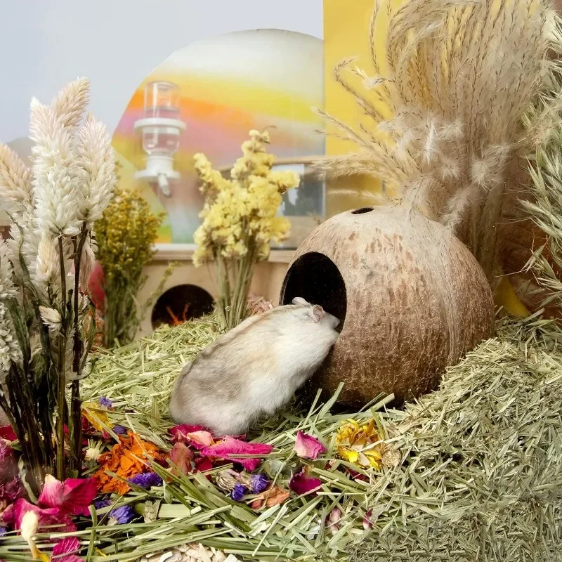 Casa para hámster, carcasa de coco Natural resistente a mordeduras, conejillo de indias, escondite para hámster, jaula para animales pequeños, decoración para hábitat, suministros para mascotas