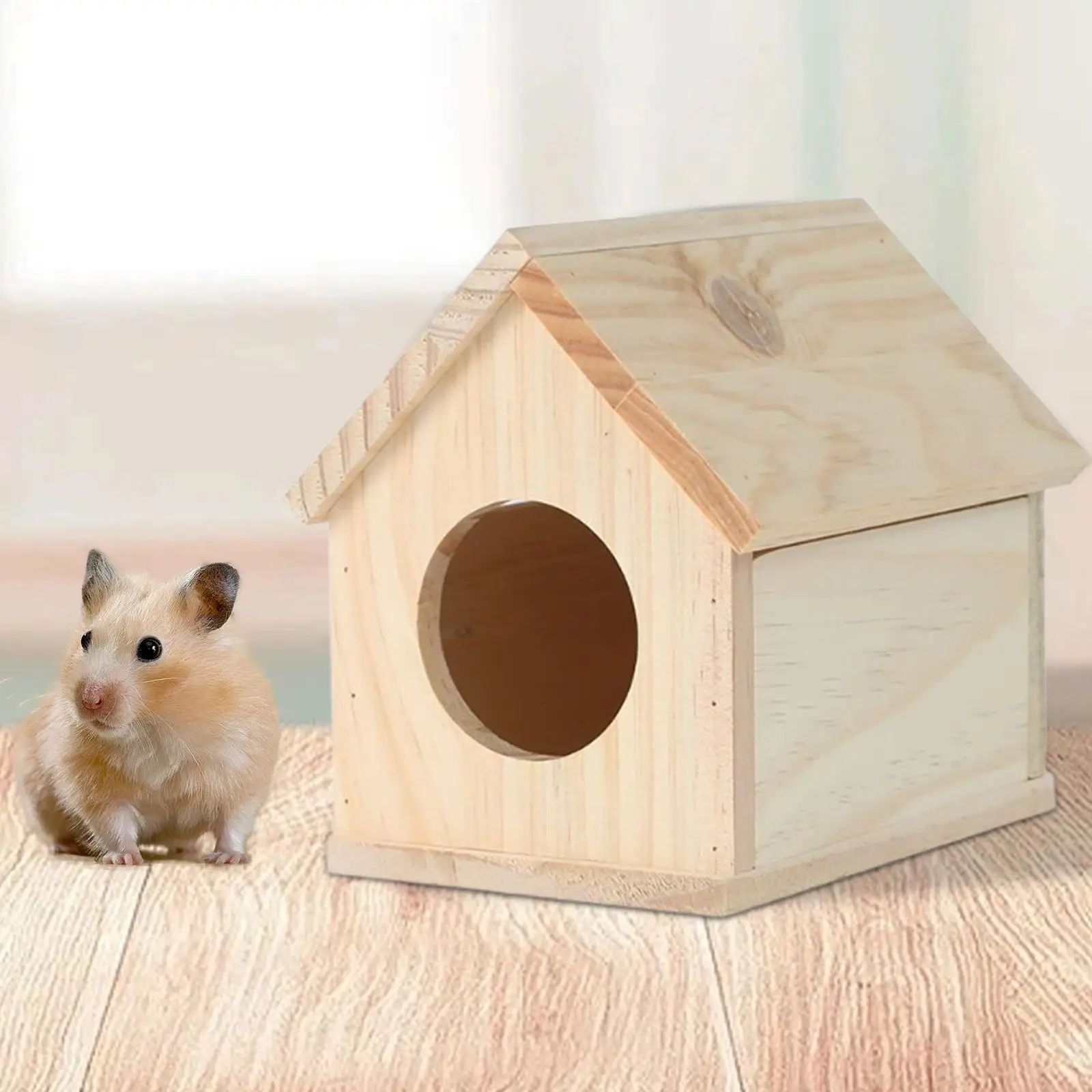 Material: escondite para hámster de la casa del hámster hecho de material de madera, que es resistente para uso a largo plazo.