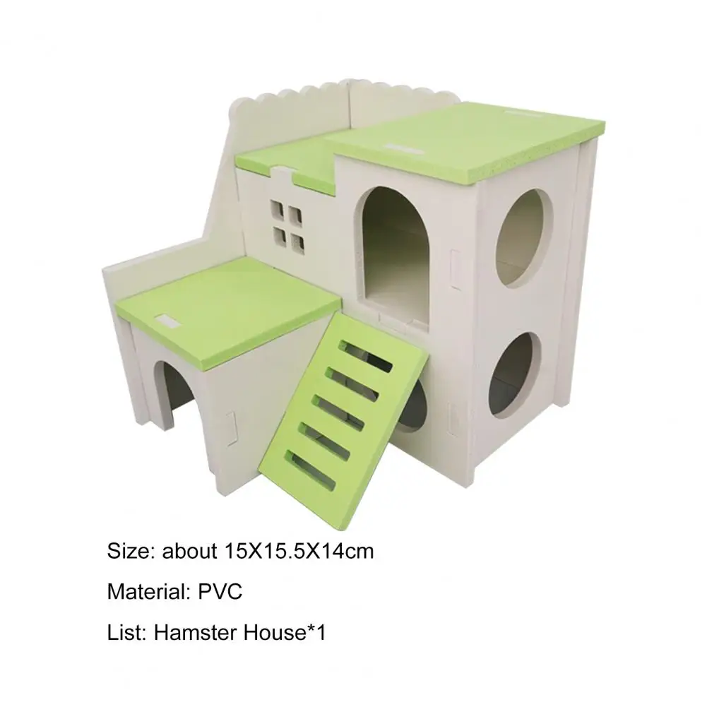 Fabricada con material de PVC ecológico, la casa para hámster es anticorrosión y resistente a la humedad, y no pondrá en peligro la salud de los animales pequeños.