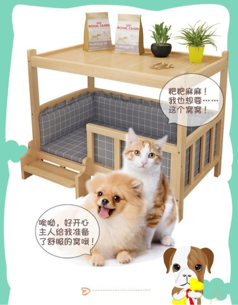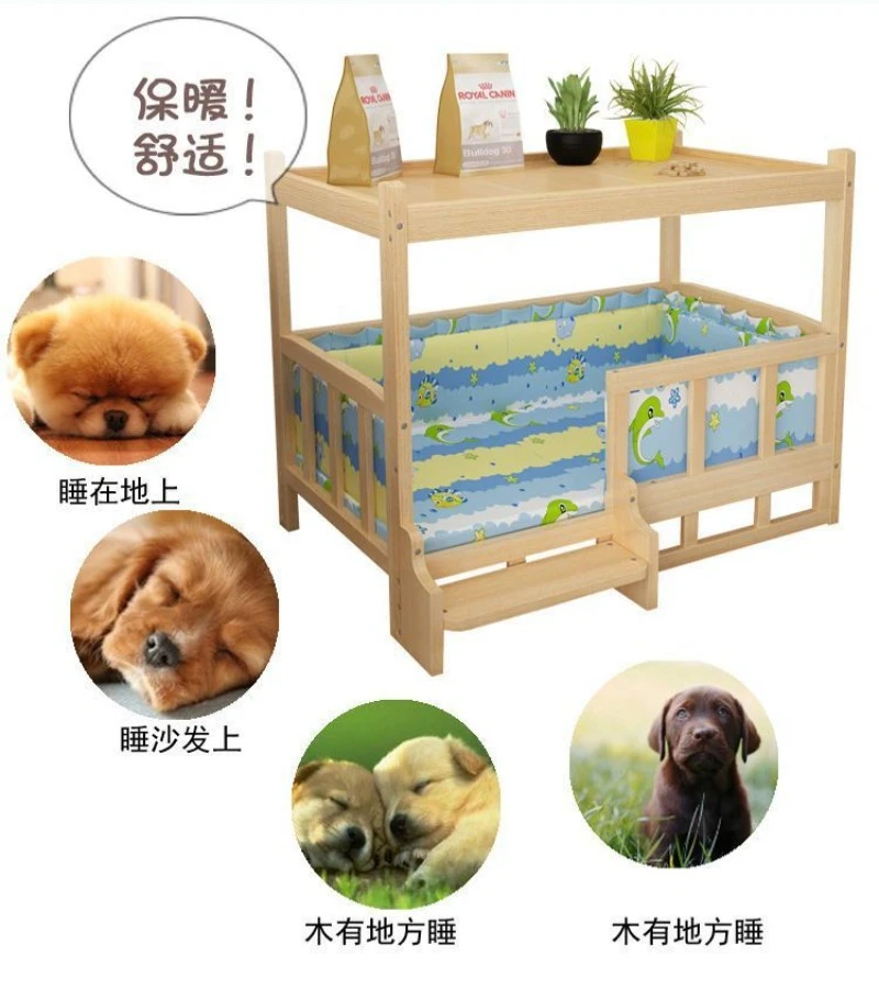 Casa de madera maciza para perros, lata de madera desmontada lavada para las cuatro estaciones, productos simples para muebles para mascotas, cama, accesorios para mesita de noche para el hogar