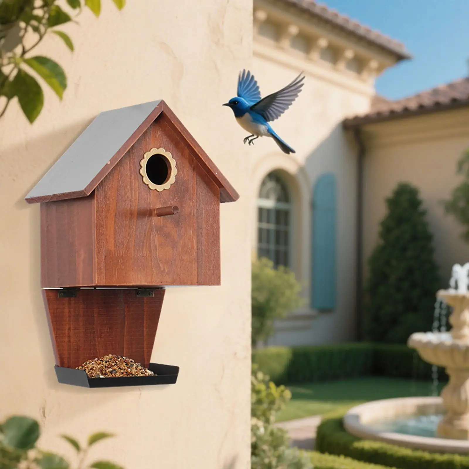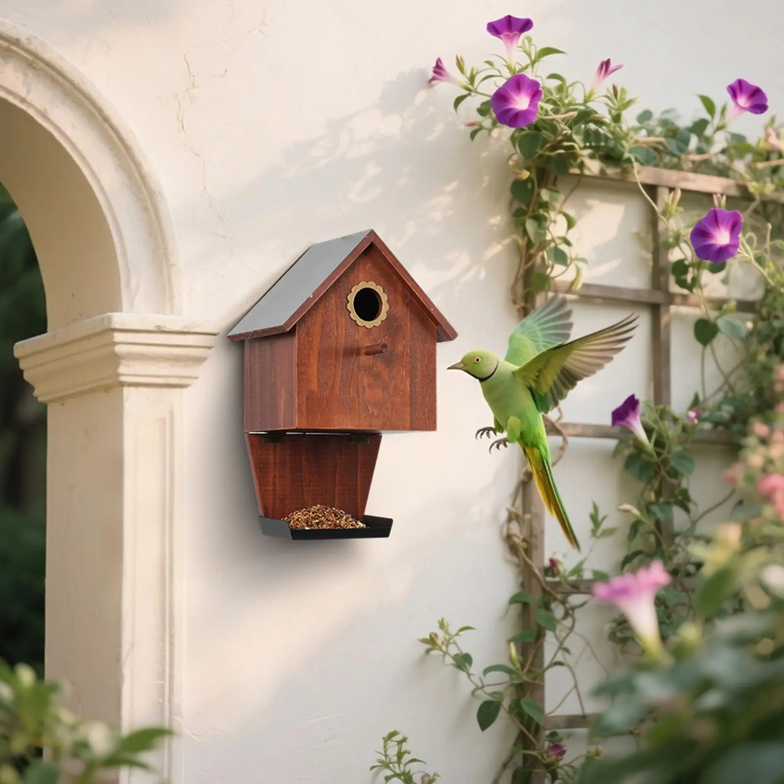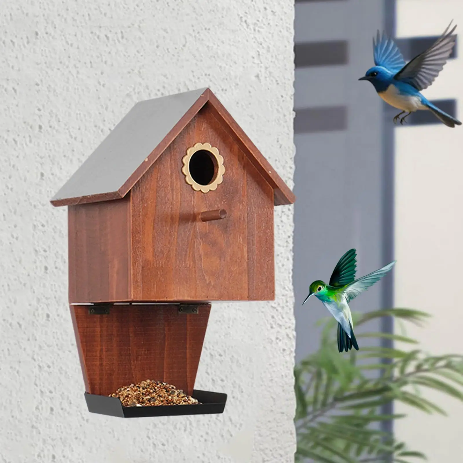 【Diseño】: Combina un acogedor espacio nido con un comedero integrado, brindando a los pájaros refugio y fácil acceso a los alimentos.