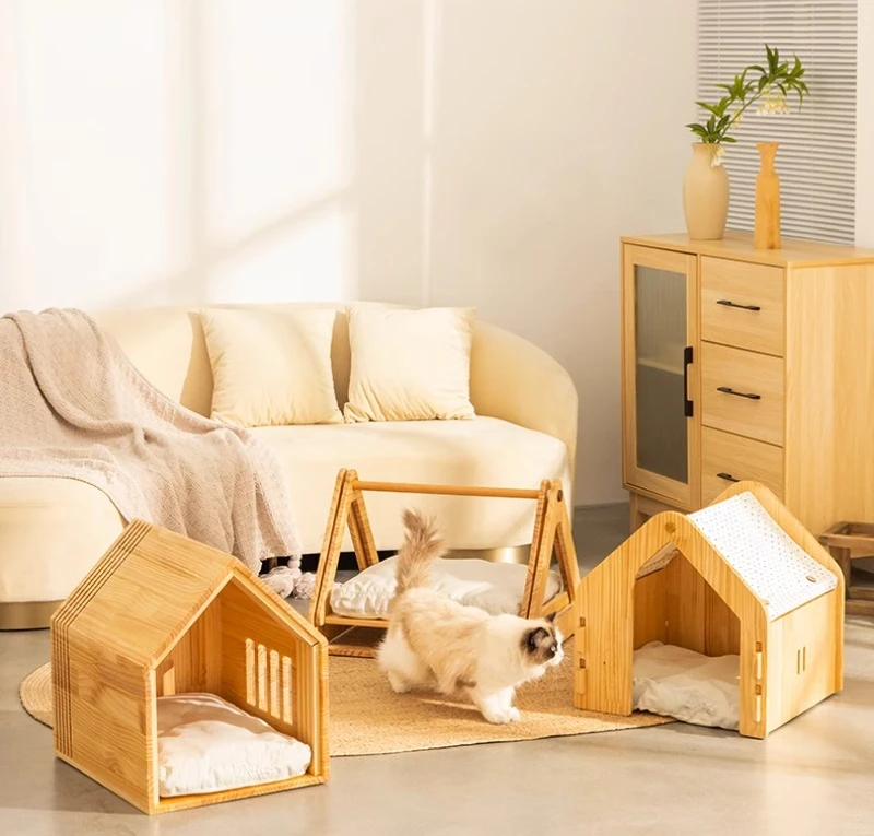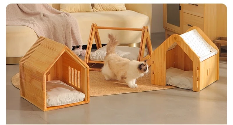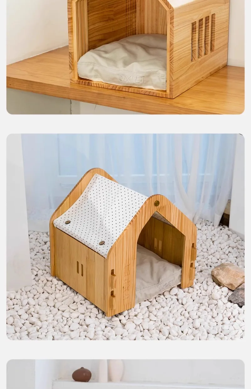 Casa de madera para perros, casa interior, perrera para todas las estaciones, casa para perros pequeños, nido para gatos