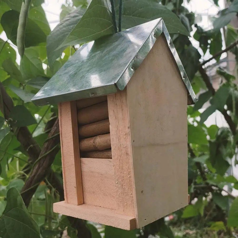 2. Madera robusta: Construida con materiales de madera y componentes tubulares, esta casa Ladyfly replica el entorno de las cuevas naturales, suministrando a las abejas un área de anidación protegida y asegurando su longevidad.