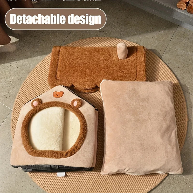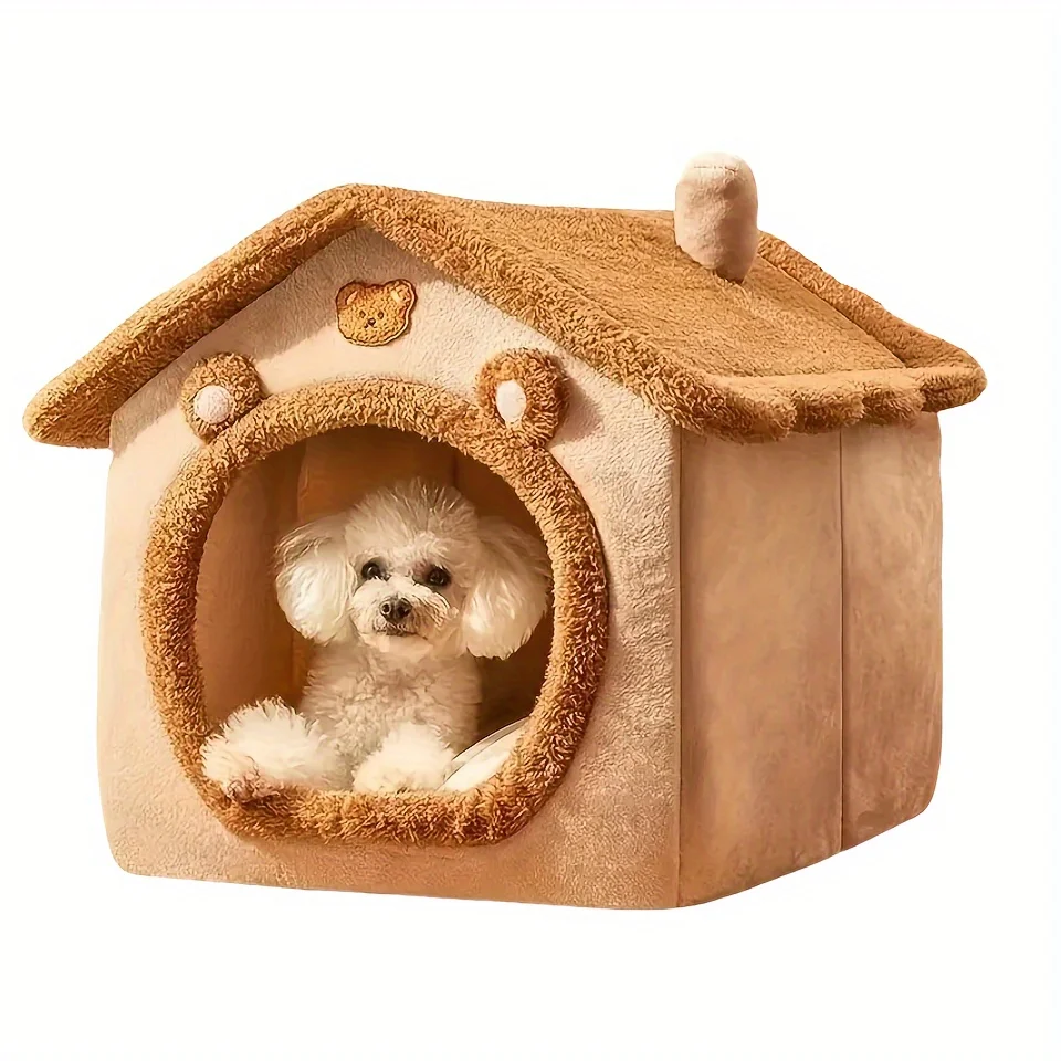 Casa plegable para mascotas, cama extraíble y lavable para gatos, perro cálido interior con cojín para casa de cama para mascotas, adecuado para mascotas pequeñas, medianas y grandes