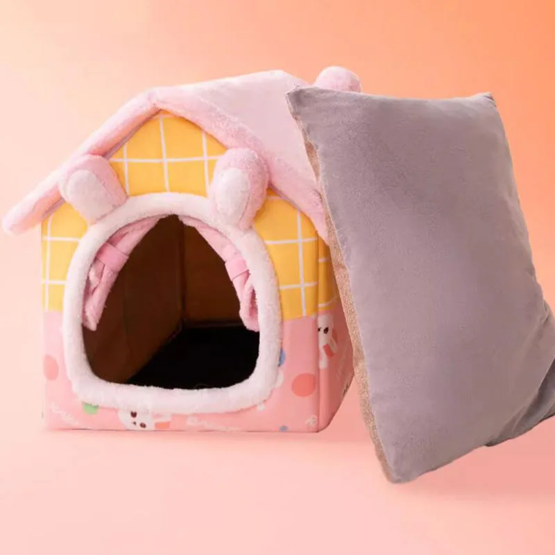 Casa de mascotas de felpa gruesa, completamente cerrada, extraíble y lavable, jaula de algodón para gatos y perros, nido cálido