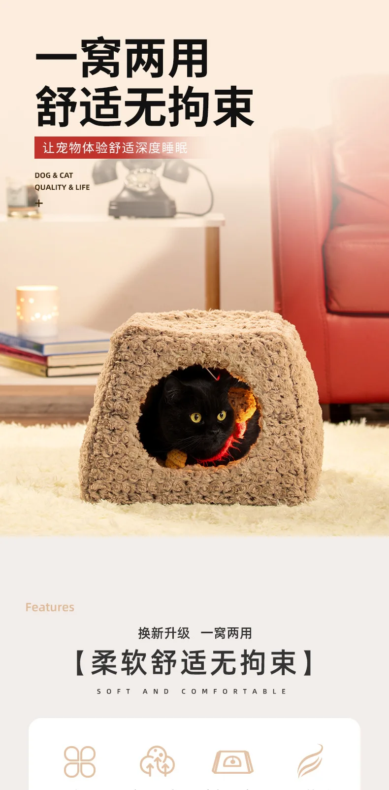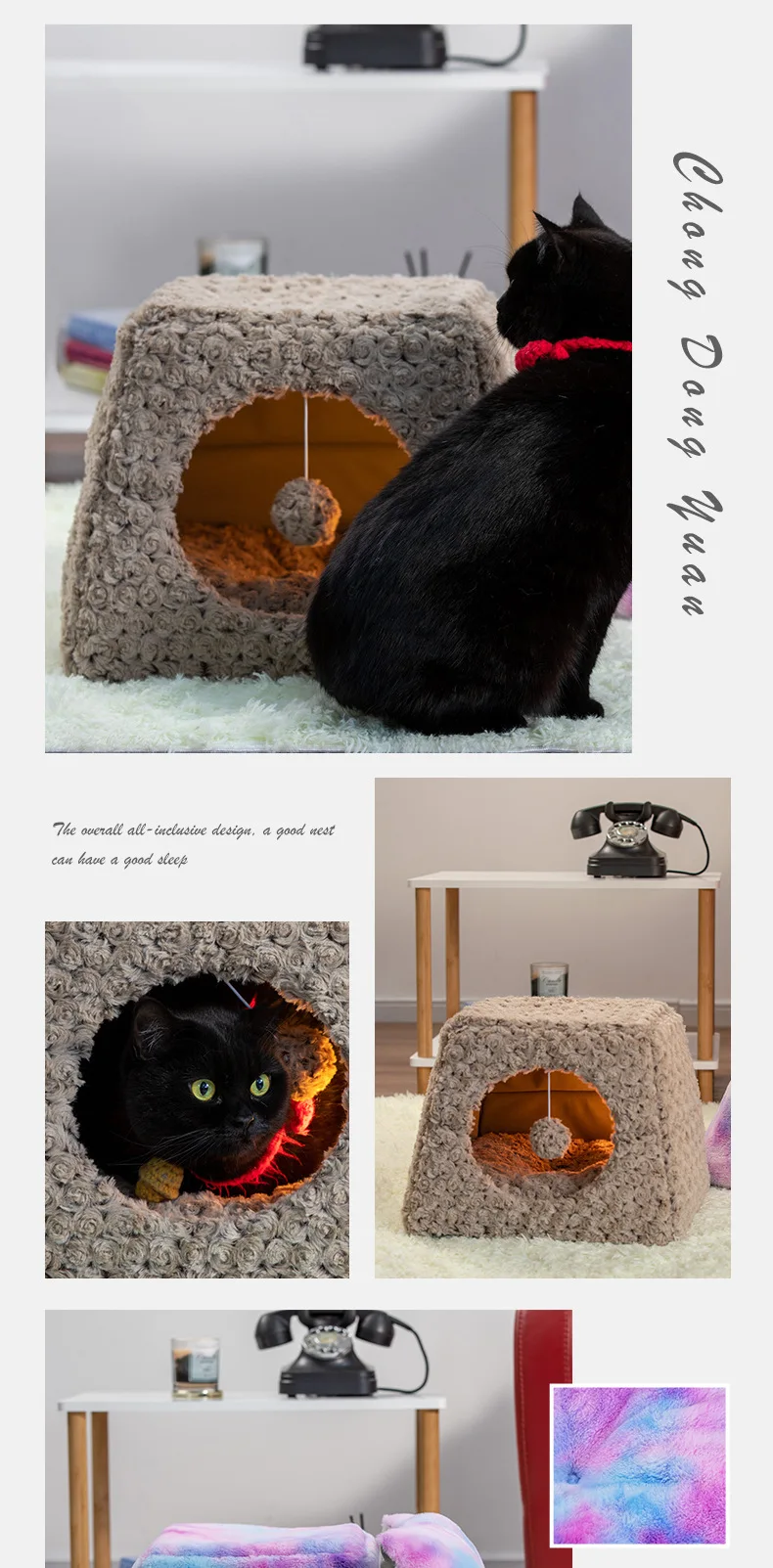 Casa para mascotas, nido para gatos cálido en invierno, casa para gatos gruesa, extraíble y lavable en las cuatro estaciones, nido para perros, productos para mascotas