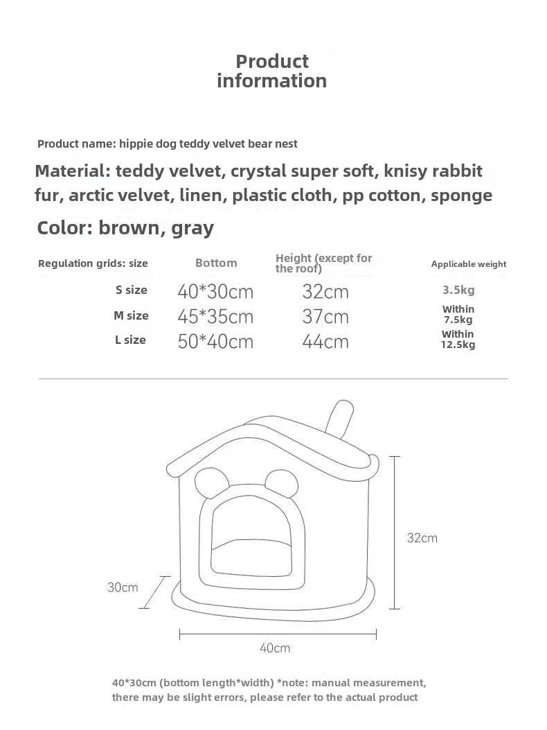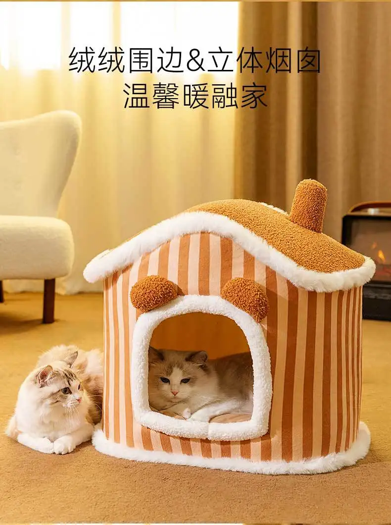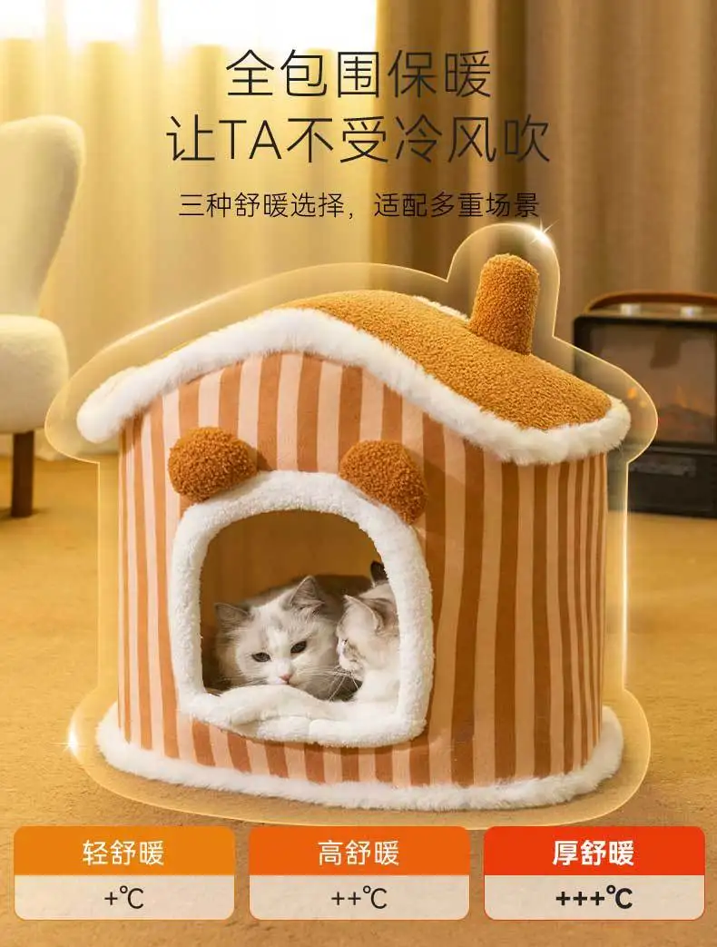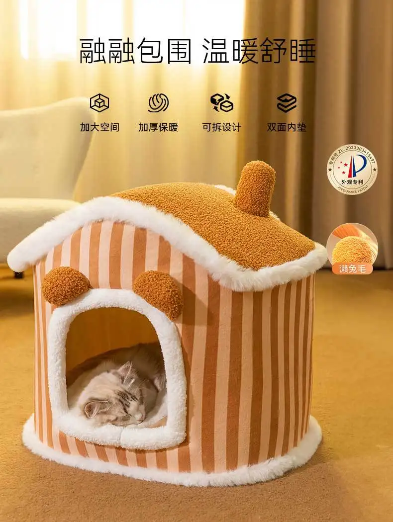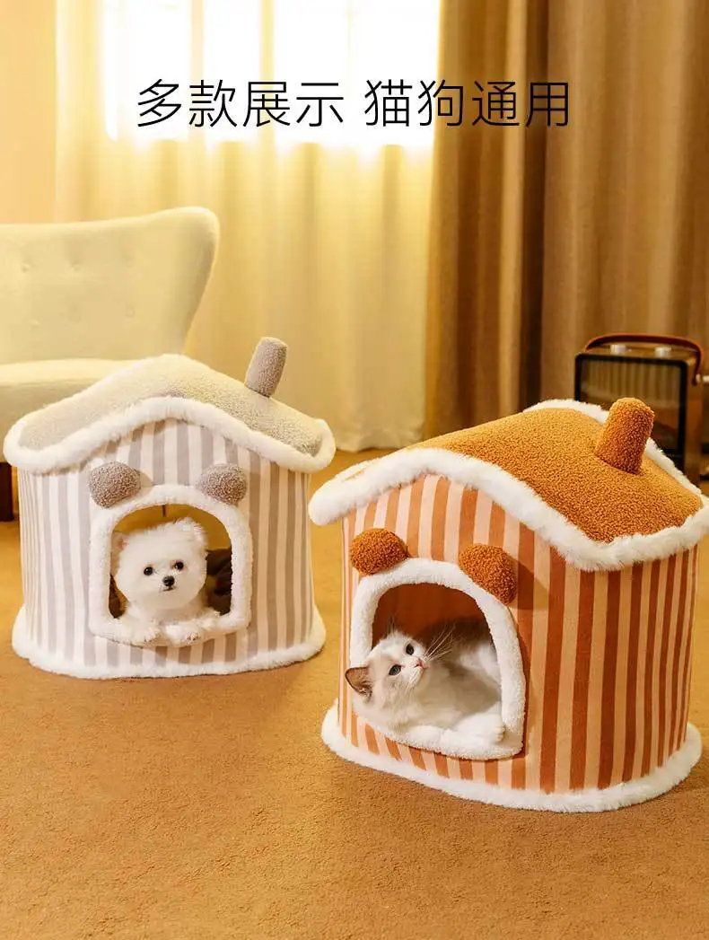 Casa nido para mascotas tipo otoño e invierno, nido cerrado para gatos, cama cálida para gatos, casa para perros, suministros para perrera de invierno