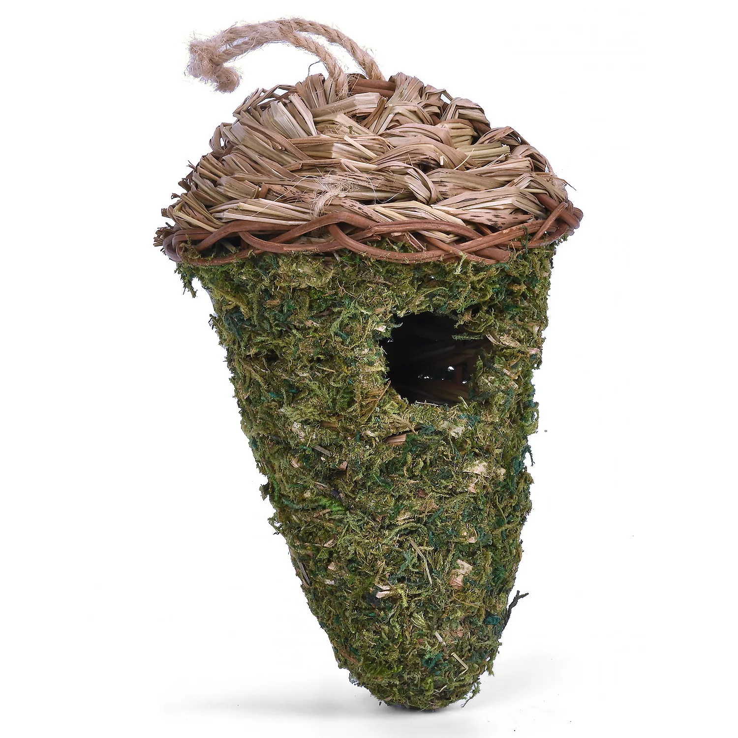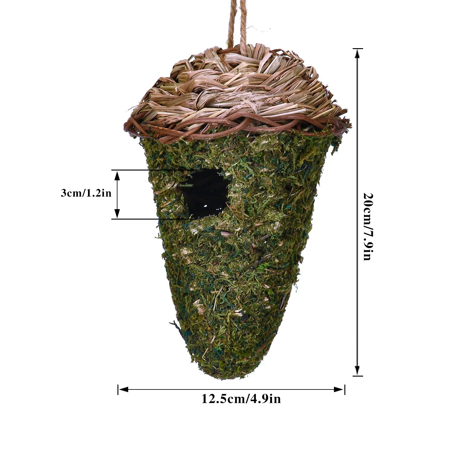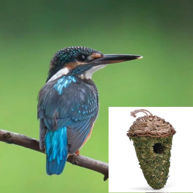 Material: esta casa colgante para colibríes está hecha de material de musgo de alta calidad, respetuoso con el medio ambiente, duradero y de apariencia exquisita.