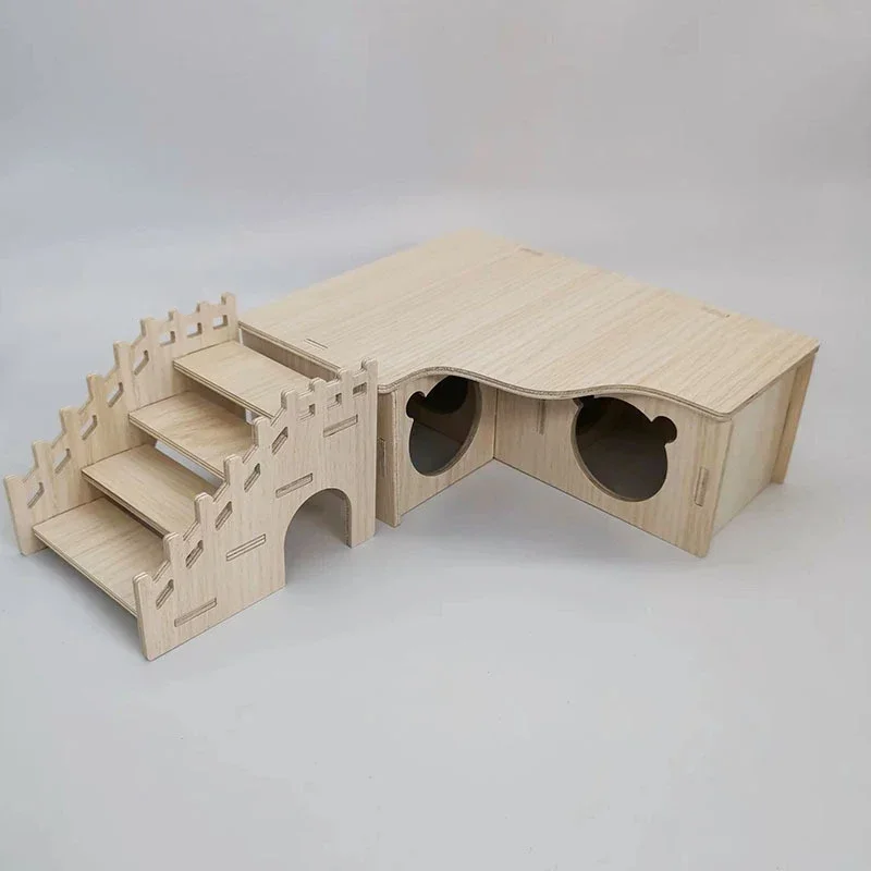 Casa pequeña de madera para hámster, escalera de escalada, túnel oculto, nido para dormir para hámster, escaleras ocultas, accesorios para el hogar de animales pequeños