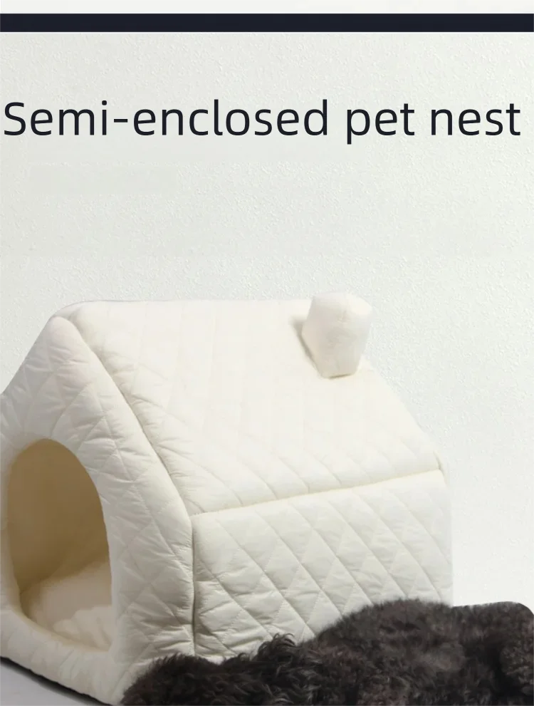 Casa pequeña cálida de invierno para perros, cama para mascotas de felpa suave semicerrada, perrera para interiores y exteriores, nido para gatos, suministros para cachorros calmantes antiansiedad