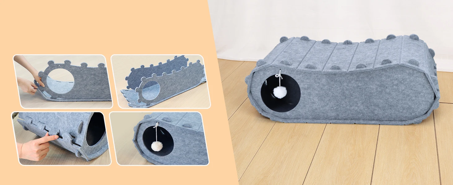 El tamaño del producto es lo suficientemente grande. Adecuado para gatos de todos los tamaños. Proporcione un hogar espacioso y cómodo para su mascota. Las mascotas pueden jugar y dormir.