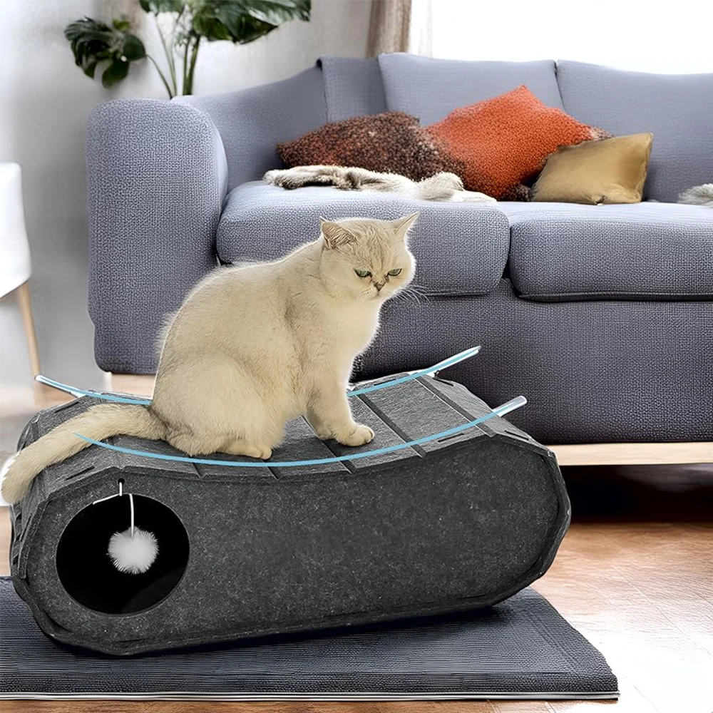 Hecho con tela de alfombra resistente a los arañazos y duradera, este rascador para gatos está diseñado para durar y no se desprenderá fácilmente. No más pelusas desordenadas o restos molestos. Satisface los instintos naturales de rascado de los gatitos mientras mantiene un ambiente doméstico limpio y ordenado.