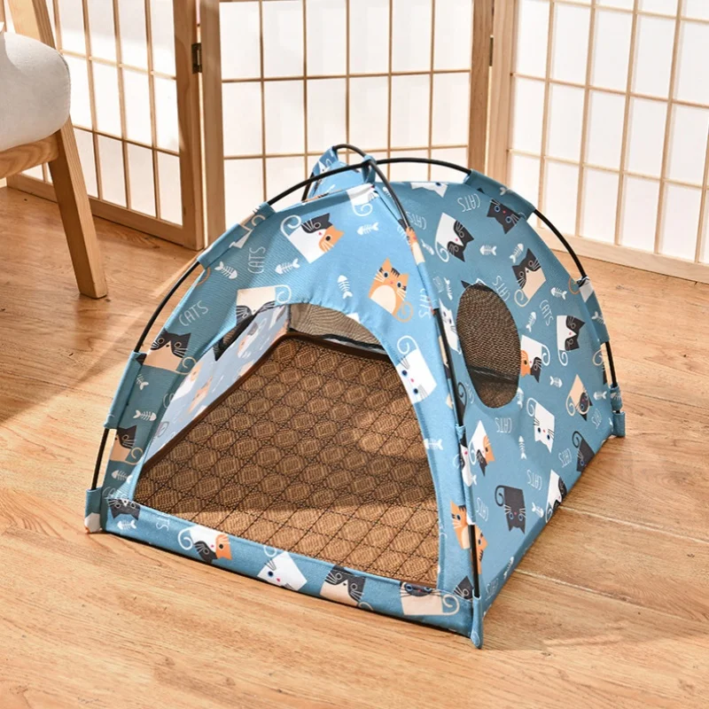 Casa plegable para gatos, tienda para mascotas, nido Universal para perros y gatos para las cuatro estaciones, estera fresca de verano para exteriores, portátil, plegable y transpirable