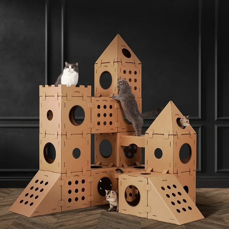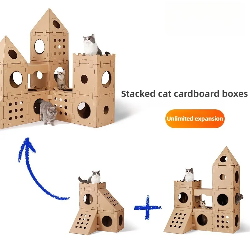 Casa para gatos, nido para gatos, marco de escalada para gatos, tabla para rascar, garra de molienda, caja de cartón resistente al desgaste, casa para gatos apilable, patio de juegos King Size