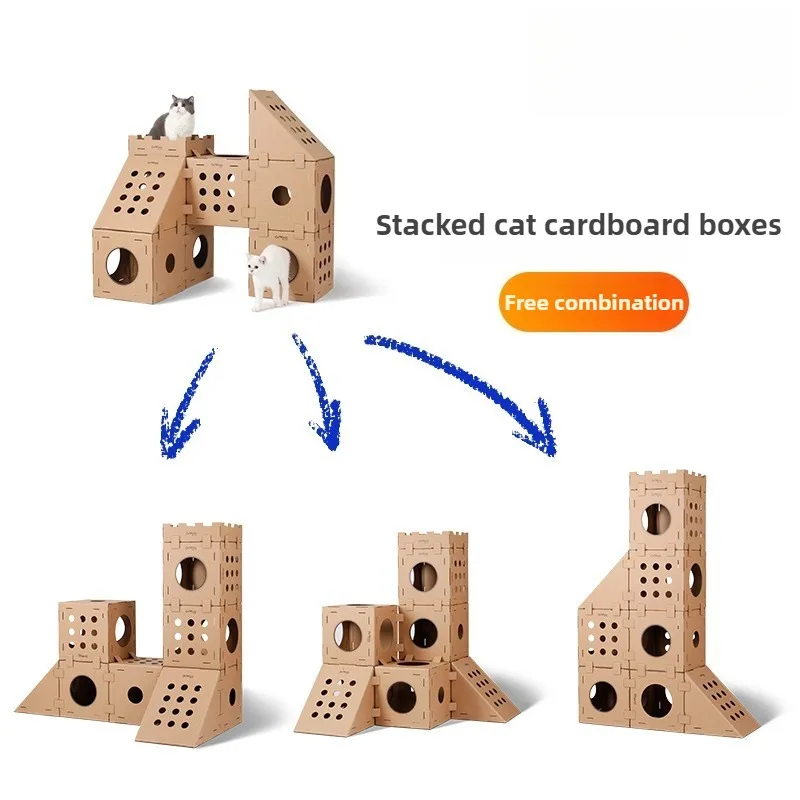 Casa para rascar gatos, raspador de cartón para interiores, árbol para gatos, casa oculta para gatos multicapa, cama para gatos trepadora apilable resistente al desgaste