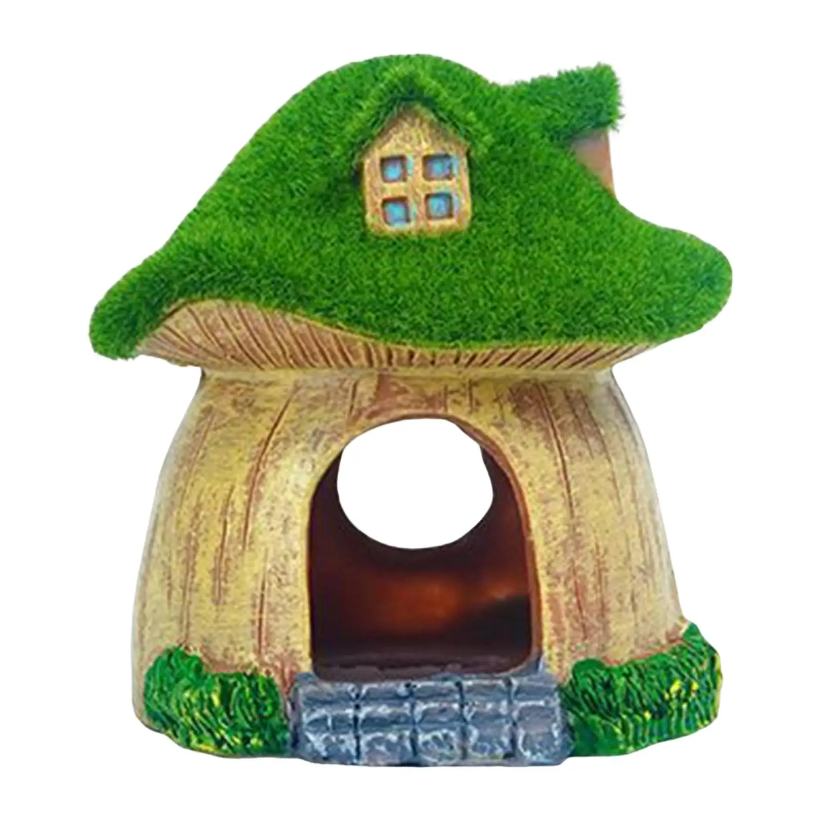 【Aplicación】: decoración de pecera de casa de hongos de acuario, ideal para peces pequeños o reptiles, esconder, escupir o gatear