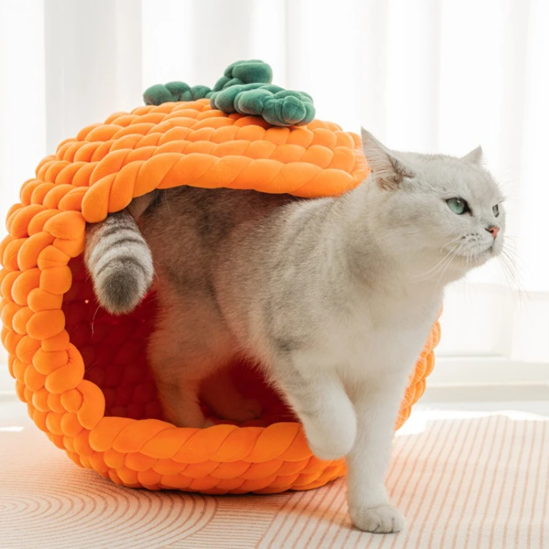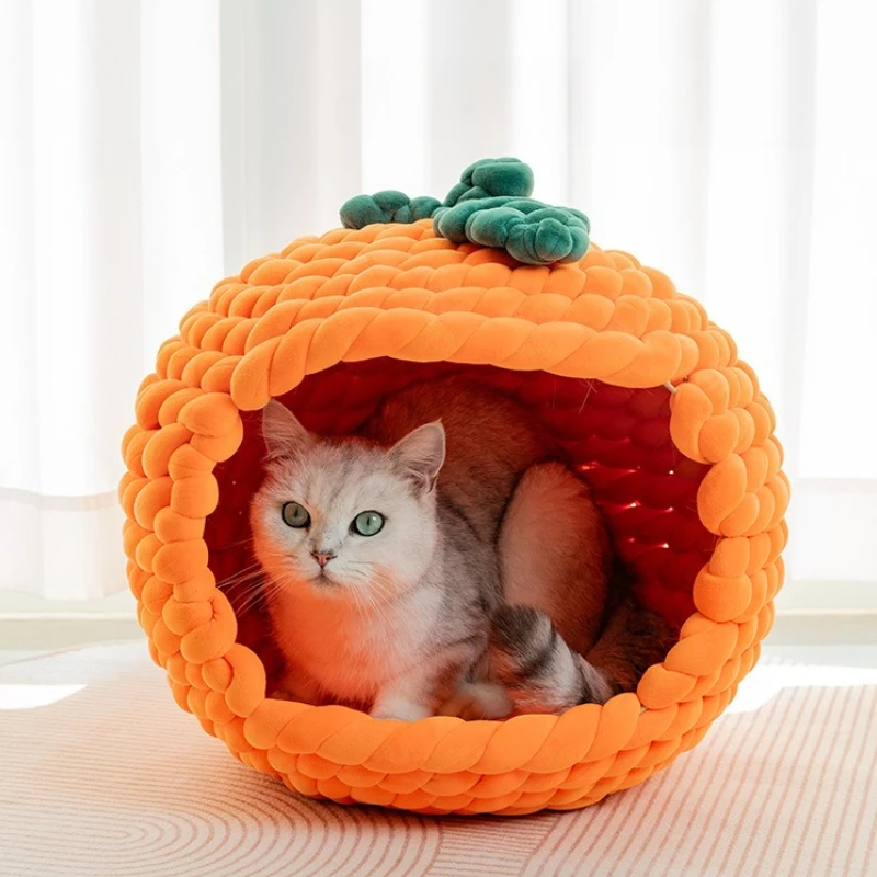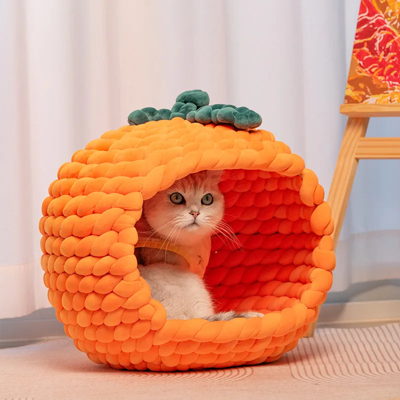 Casa suave para gatos, cama colorida semicerrada para gatos tejida a mano, camas interiores creativas, camas cómodas y seguras para mascotas, casa escondite para gatitos