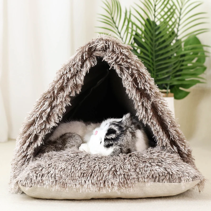 Casa de tienda de campaña para mascotas, cama de felpa cálida para gatos, perrera suave para cachorros y gatos, tienda de dormir interior con cojín, suministros para mascotas, nuevo