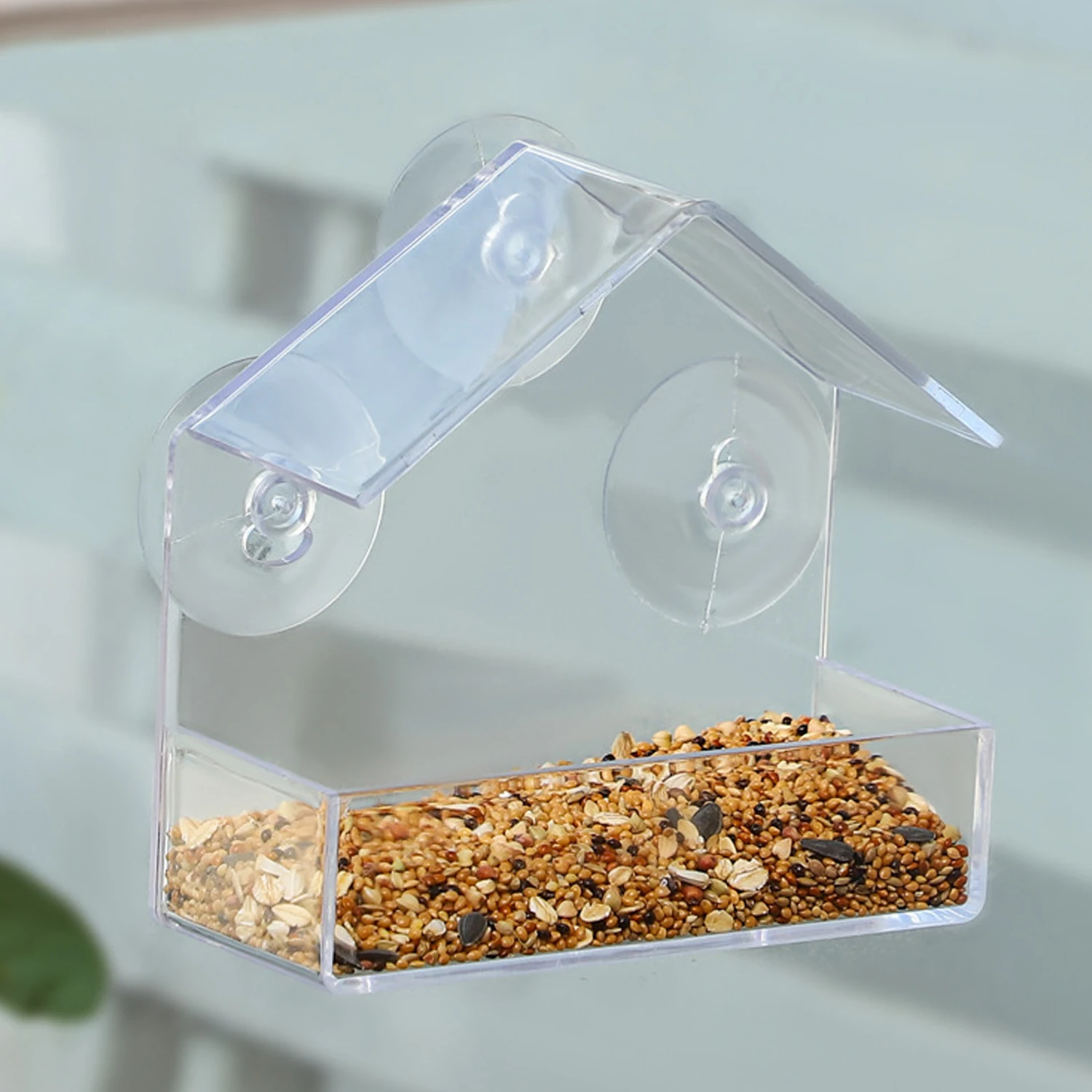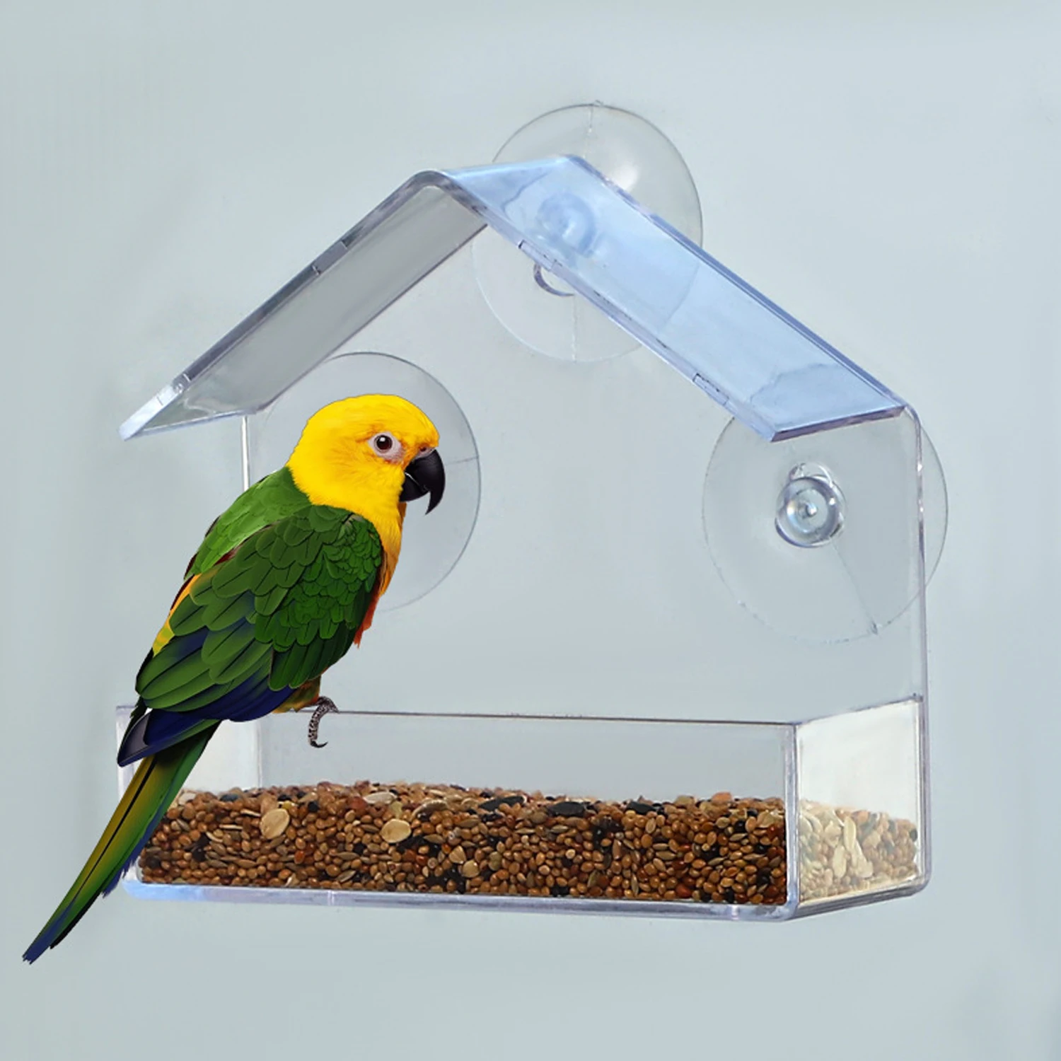 Acrílico transparente: hecho de material acrílico transparente de alta calidad, duradero y hermoso, fácil de observar la alimentación de los pájaros.