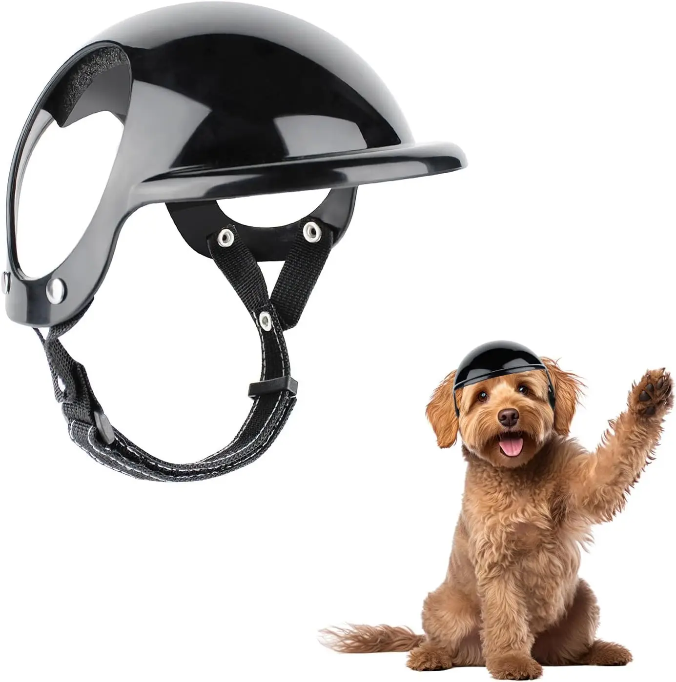 Uso cómodo: la almohadilla de espuma suave en el interior envuelve suavemente la cabeza del perro, amortiguando eficazmente las molestias causadas por los impactos.Equipado con una correa de barbilla ajustable (16,5”-18,5"), puede ajustar fácilmente la tensión, lo que garantiza un ajuste seguro para una mayor tranquilidad.