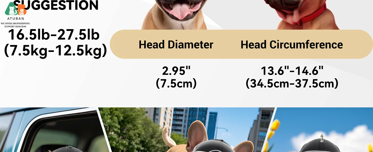 El diseño del orificio para la oreja liberando ambas orejas del perro asegurará mejor la cabeza del perro y evitará que se caiga fácilmente.Los cascos mate le permiten hacer varias pegatinas o graffitis, ideales para eventos festivos como Halloween, Navidad, fiestas de cosplay, etc.