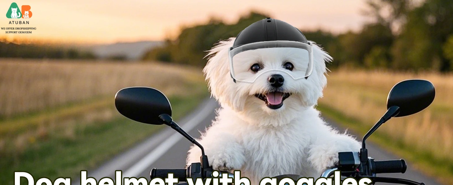 Casco para perros con gafas transparentes: El casco ATUBAN Small Dog se compone de una carcasa dura de ABS y gafas transparentes resistentes a los rayos UV.Dispositivo de protección solar suspendido de 3/4, se puede subir o bajar según sea necesario, amplio campo de visión, mejor circulación del aire.