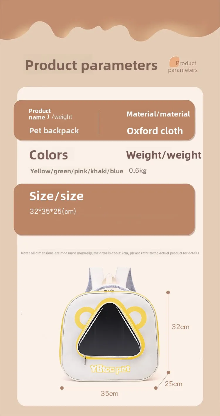 Cat Backpack Going Out Portable Double Shoulder Cat Bag Pet Schoolbag Transparent Large Capacity Summer Breathable Dog Bags