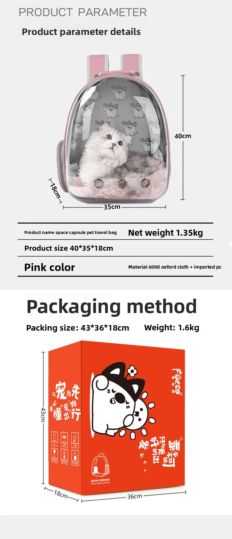 Cat Bags Out Portable Bag Space Capsule Breathable Large Capacity Backpack Dog Out Bag Cat Schoolbag Pet Supplies