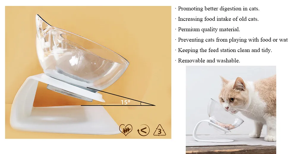 Ergonómico 15° Diseño inclinado: promueve una mejor digestión y reduce la tensión en el cuello de su gato, ideal para mascotas con estómago sensible o problemas digestivos.