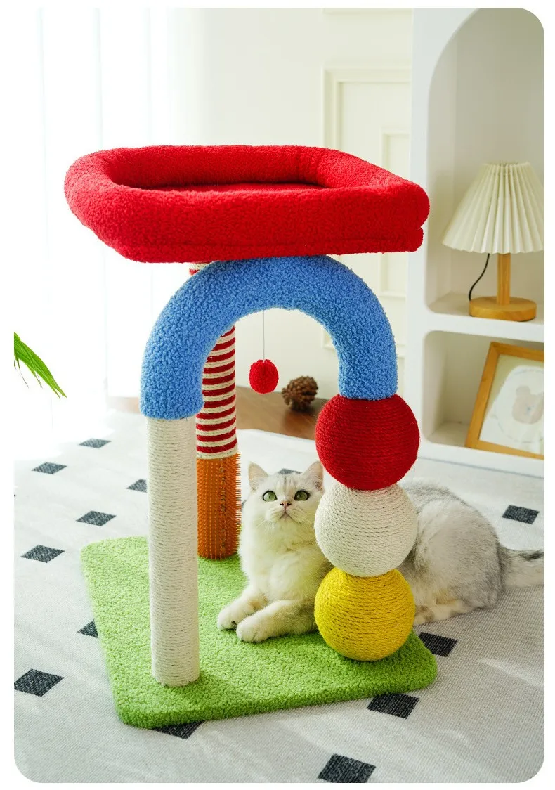 Cat Climbing Frame Colorful Cat Tree House Sisal Column Scratching Post Fot Cats Jumping Shelf Cats House Scratchers Pet Toys