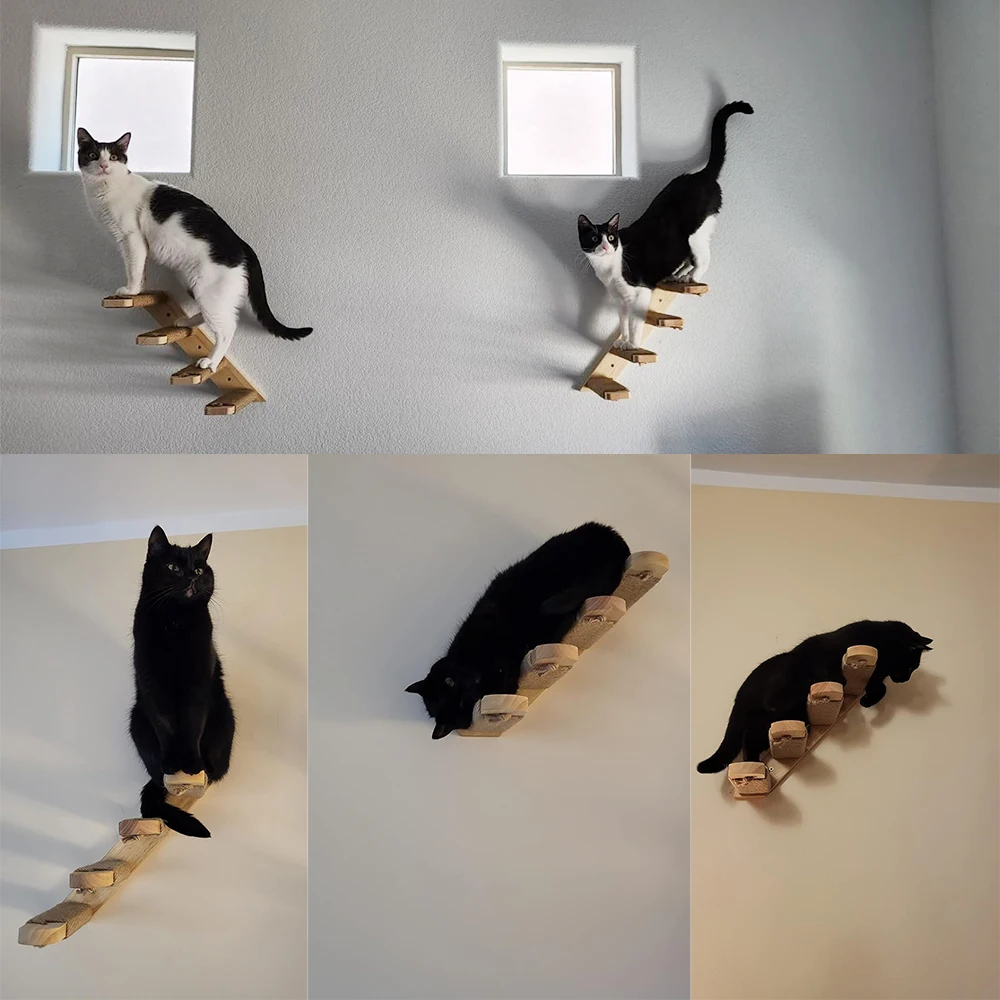Al utilizar escaleras de pared para gatos, puede ahorrar más espacio.Y además proporciona a los gatos más espacio de movimiento en la casa para liberar su naturaleza y mantenerlos sanos.