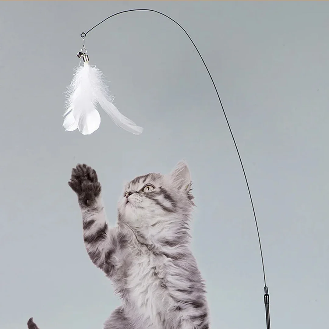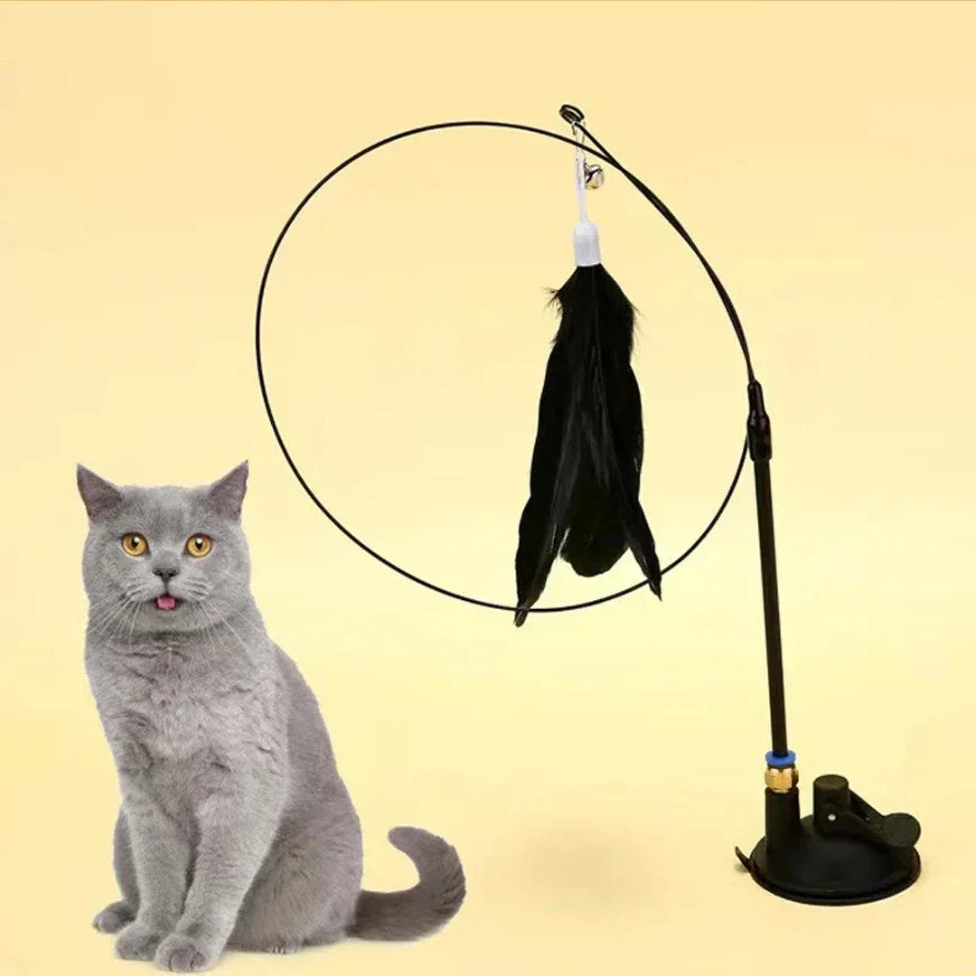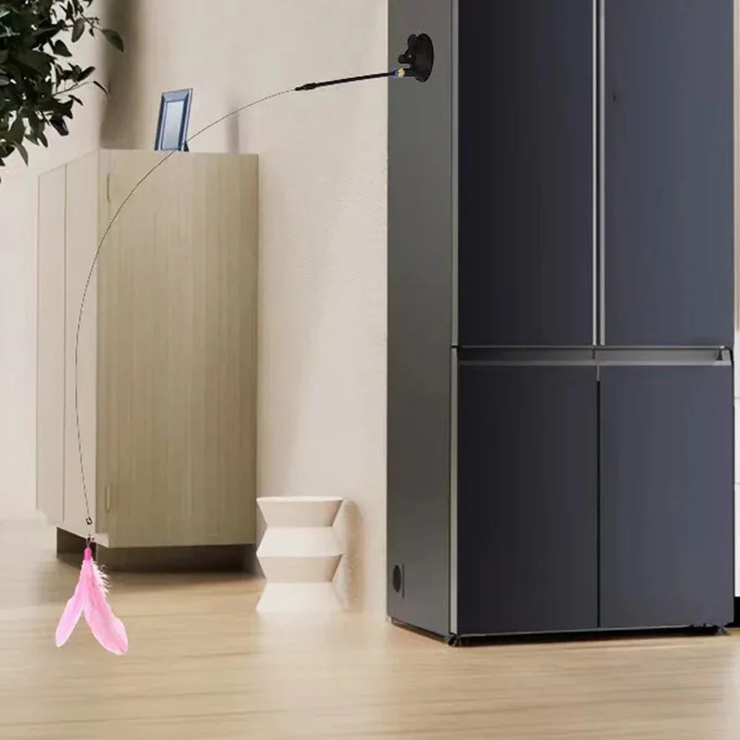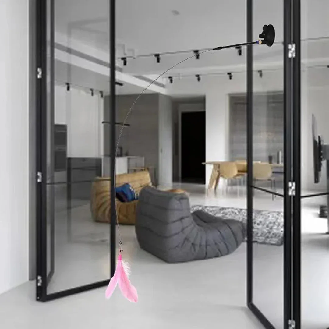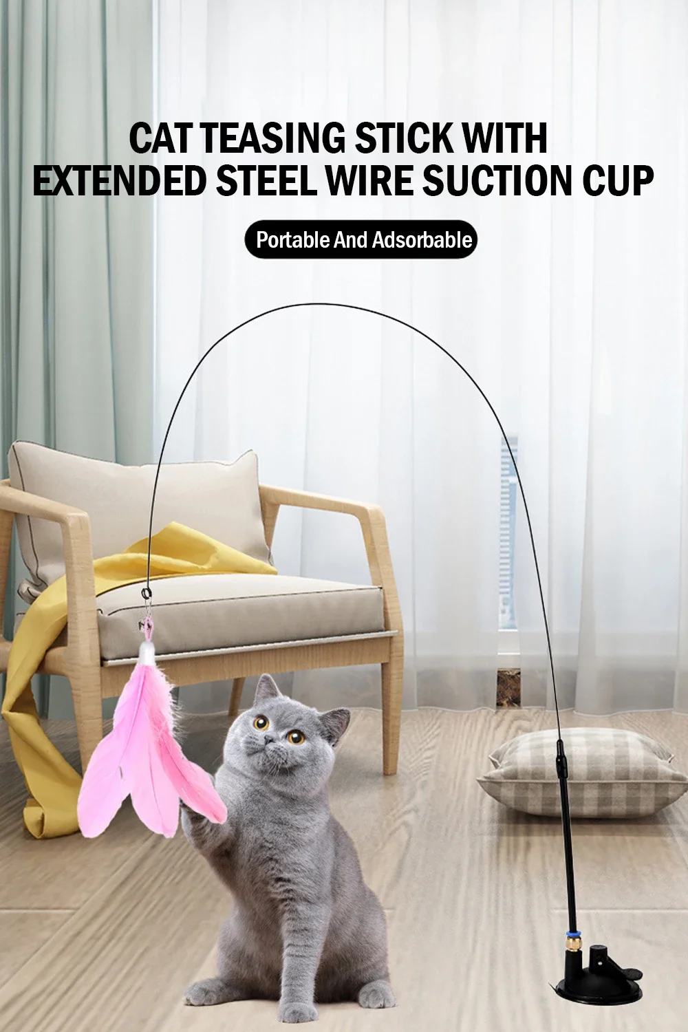 Materiales seguros y de alta calidad: los juguetes de plumas para gatos están hechos de tintes seguros y no tóxicos y material de plumas naturales. La varita para gatos está hecha de metal flexible y duradero. La ventosa está hecha de materiales TPU (3 años de duración de uso).