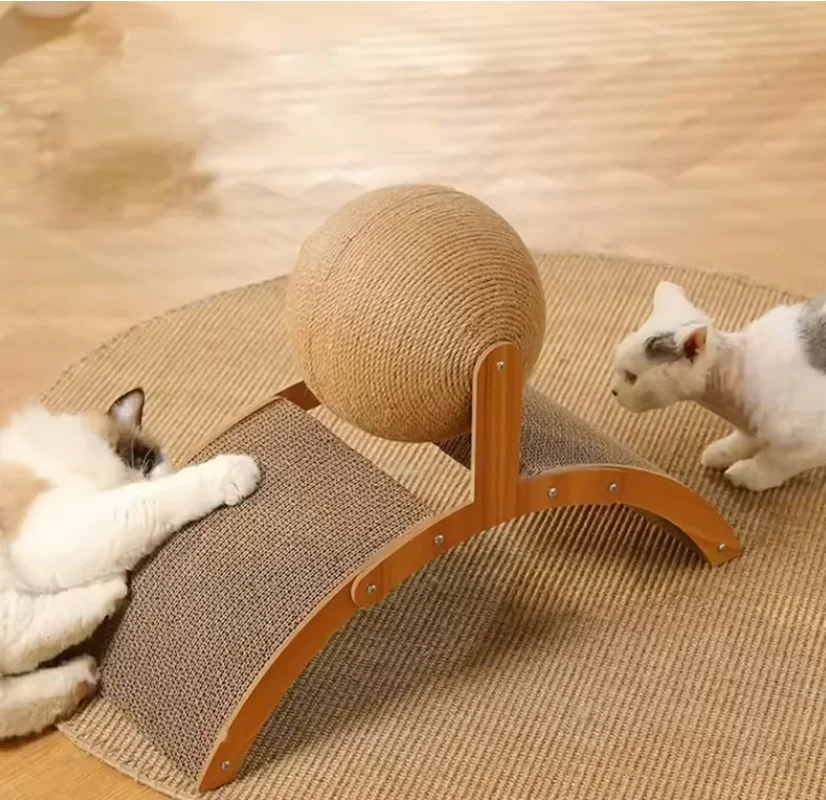 Es a la vez una herramienta para rascar para gatos, que satisface su instinto inato de rascar y reduce los daños a los muebles como sofás y cortinas; Otro excelente juguete que permite a los gatos liberar energía y ejercitar la coordinación física mientras juegan. Al mismo tiempo, también puede convertirse en un lugar de descanso para los gatos, donde pueden tumbarse y tomar una siesta cuando están cansados, dándoles una sensación de seguridad.