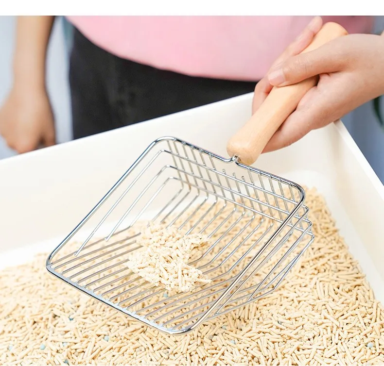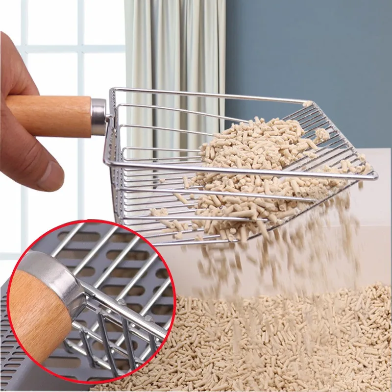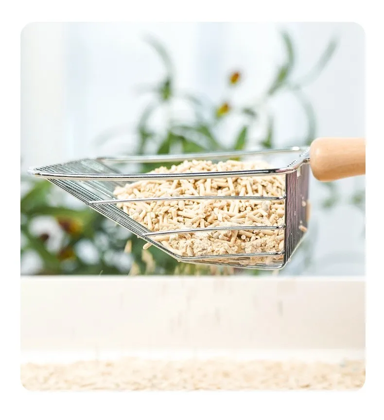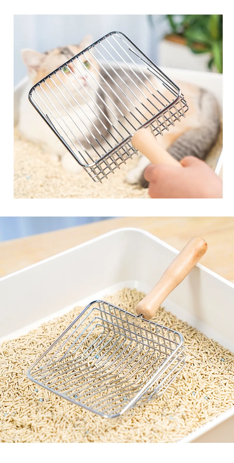 Cat Litter Scoop Stainless Steel Cat Litter Shovel Wooden Handle Sand Scoop for Cats Toilet Cleaning Cats Scoops Pet Supplies
