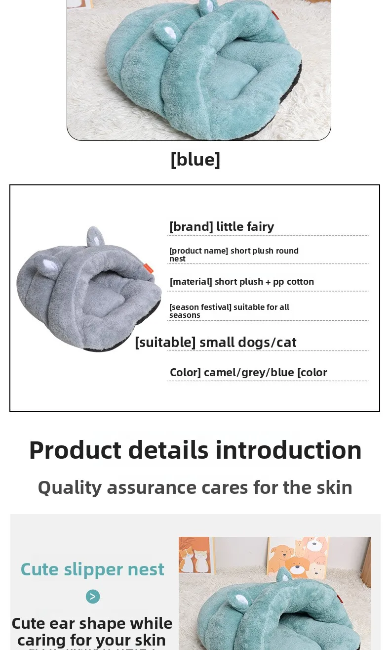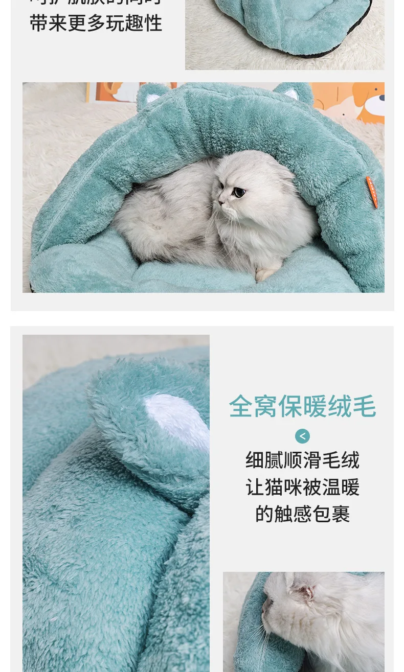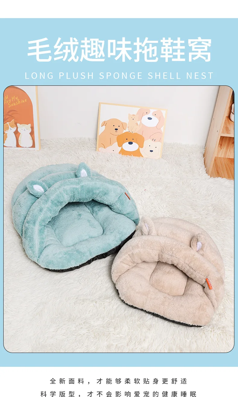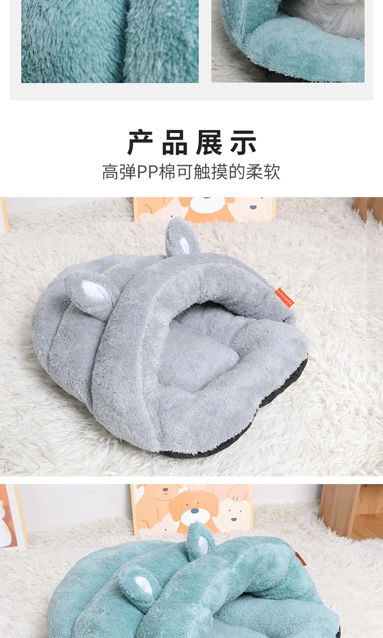 Cat Nest Pet Nest Kennel New Slippers Cute Ears Plush Warm Pet Products Warm