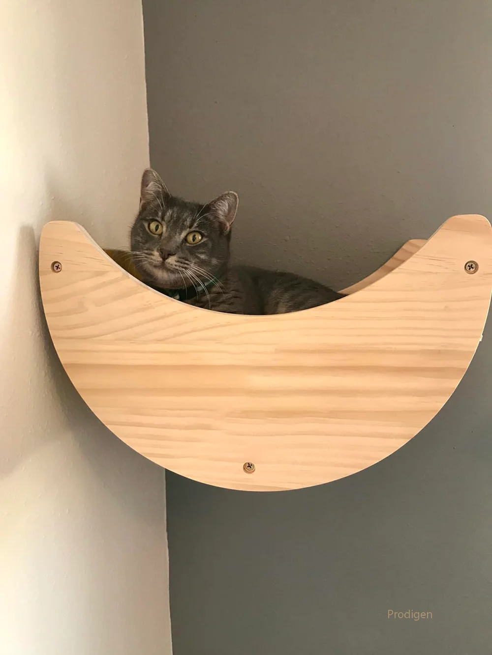 【MATERIALES DE ALTA CALIDAD】 La cama de pared para gatos utiliza materiales saludables y madera maciza, perfecta para la siesta de su gato.Diseñamos una hamaca de pared para gatos para ayudar a su gato a relajarse y tomar una siesta fácilmente.La comodidad y seguridad de su gato es nuestra principal prioridad, por eso solo utilizamos materiales de alta calidad en nuestros productos.